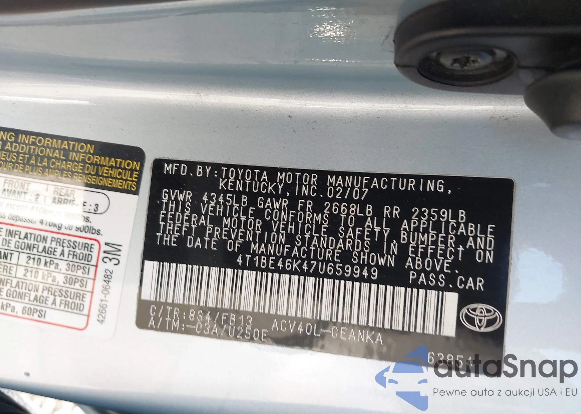 • VIN 4T1BE46K47U659949
