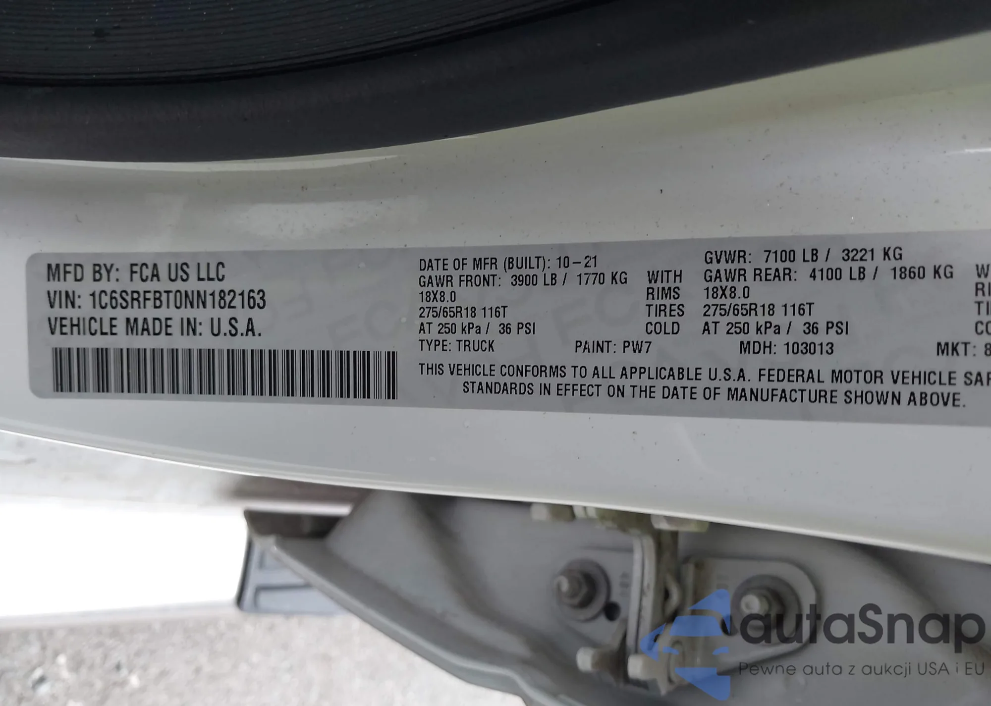 LOT: 43607062 VIN: 1C6SRFBT0NN182163