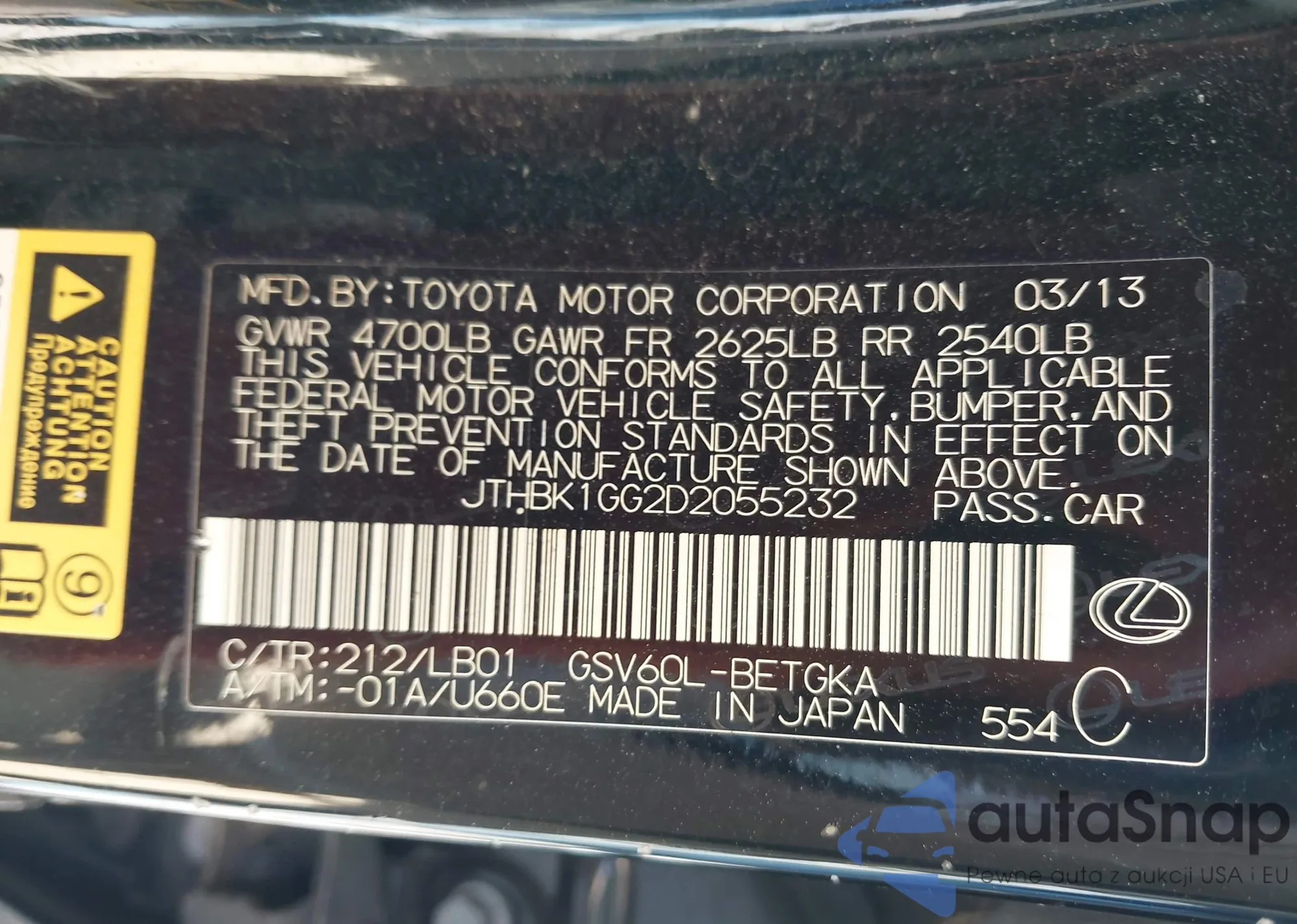 LOT: 43409297 VIN: JTHBK1GG2D2055232