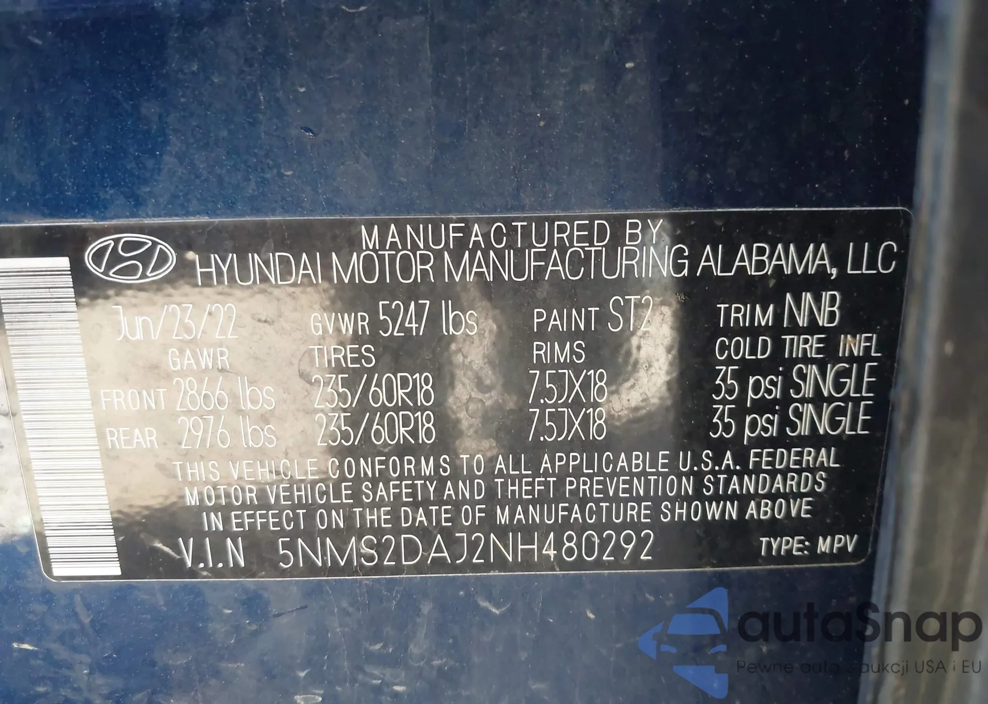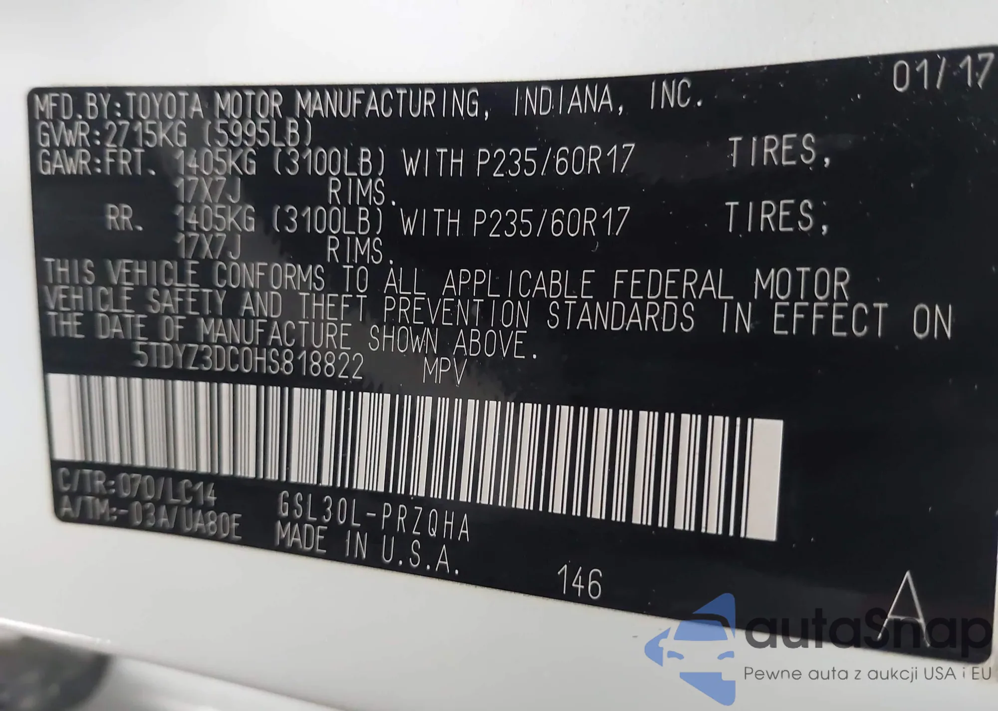 • VIN 5TDYZ3DC0HS818822