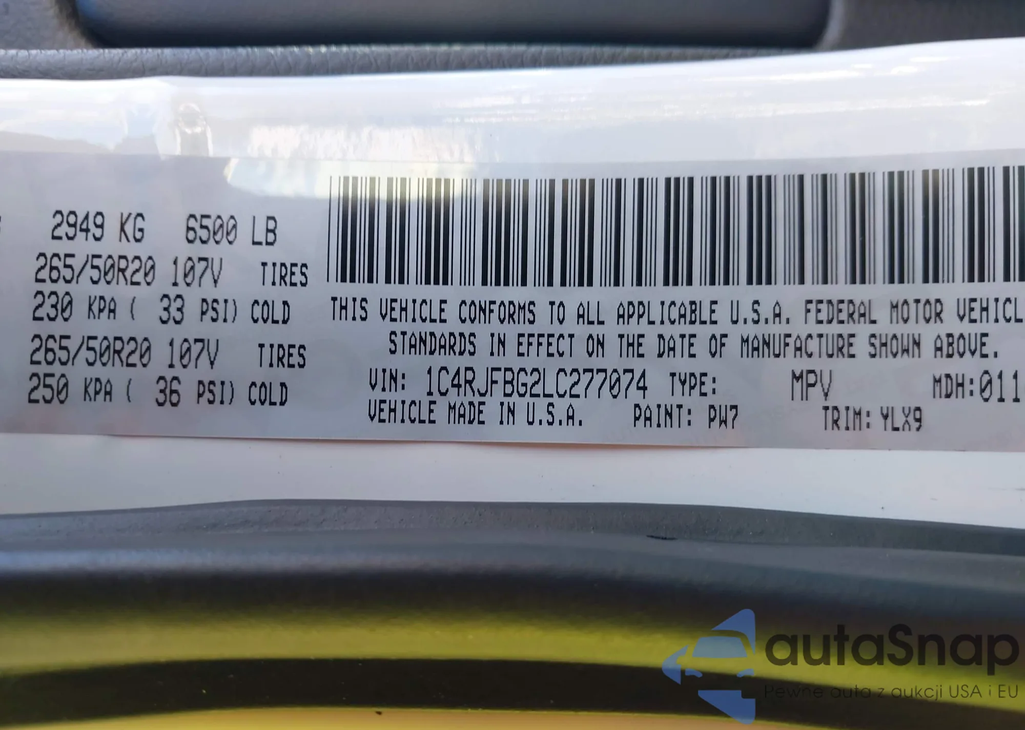 • VIN 1C4RJFBG2LC277074