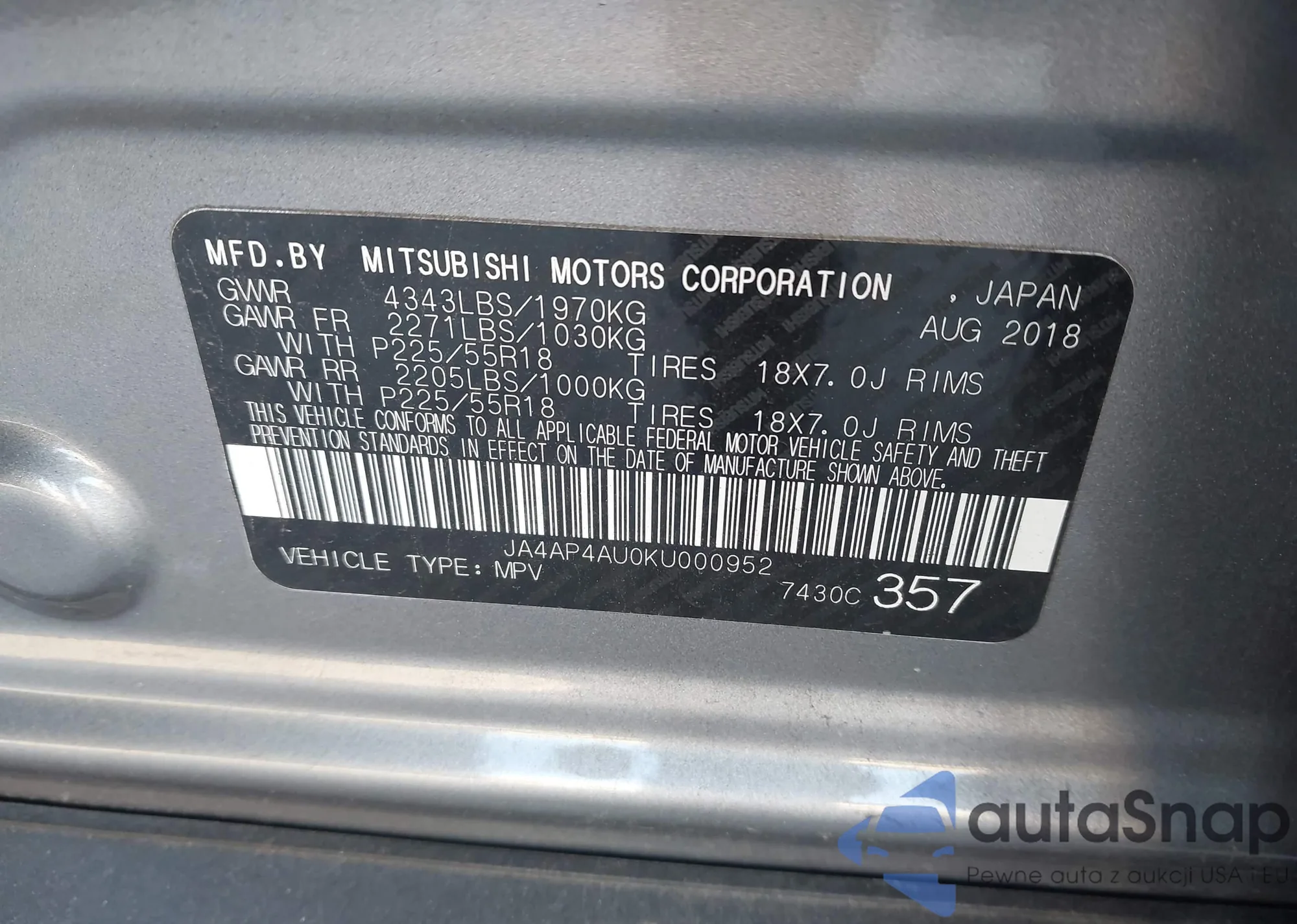 LOT: 43742801 VIN: 3GNAXJEV2JL100719