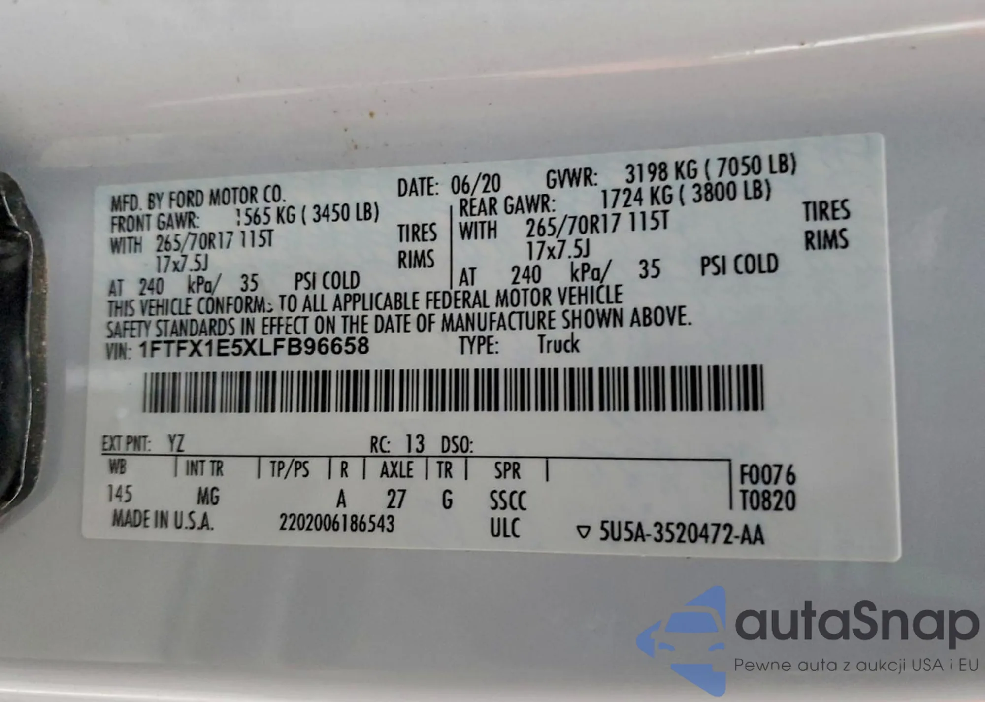 • VIN 1FTFX1E5XLFB96658