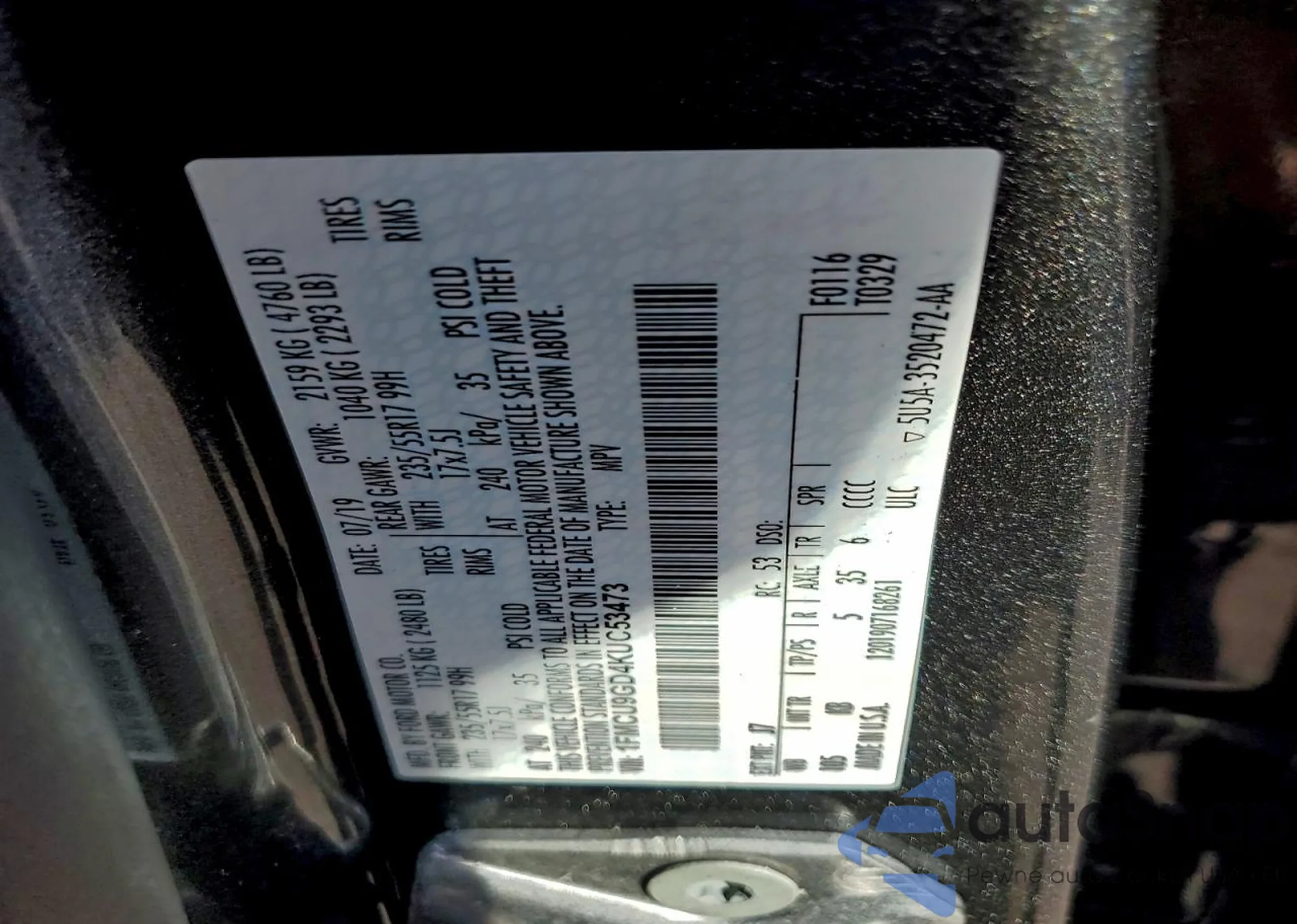 • VIN 1FMCU9GD4KUC53473