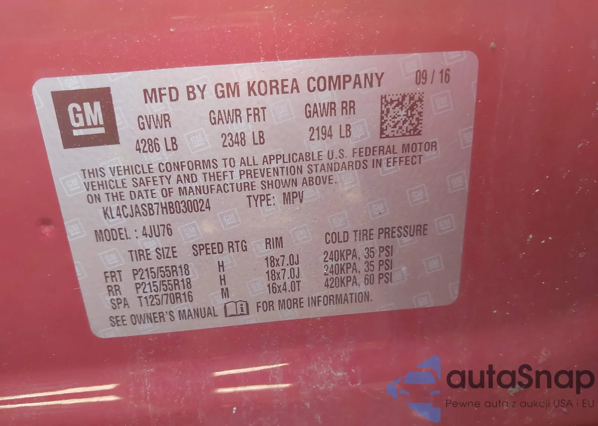 • VIN KL4CJASB7HB030024