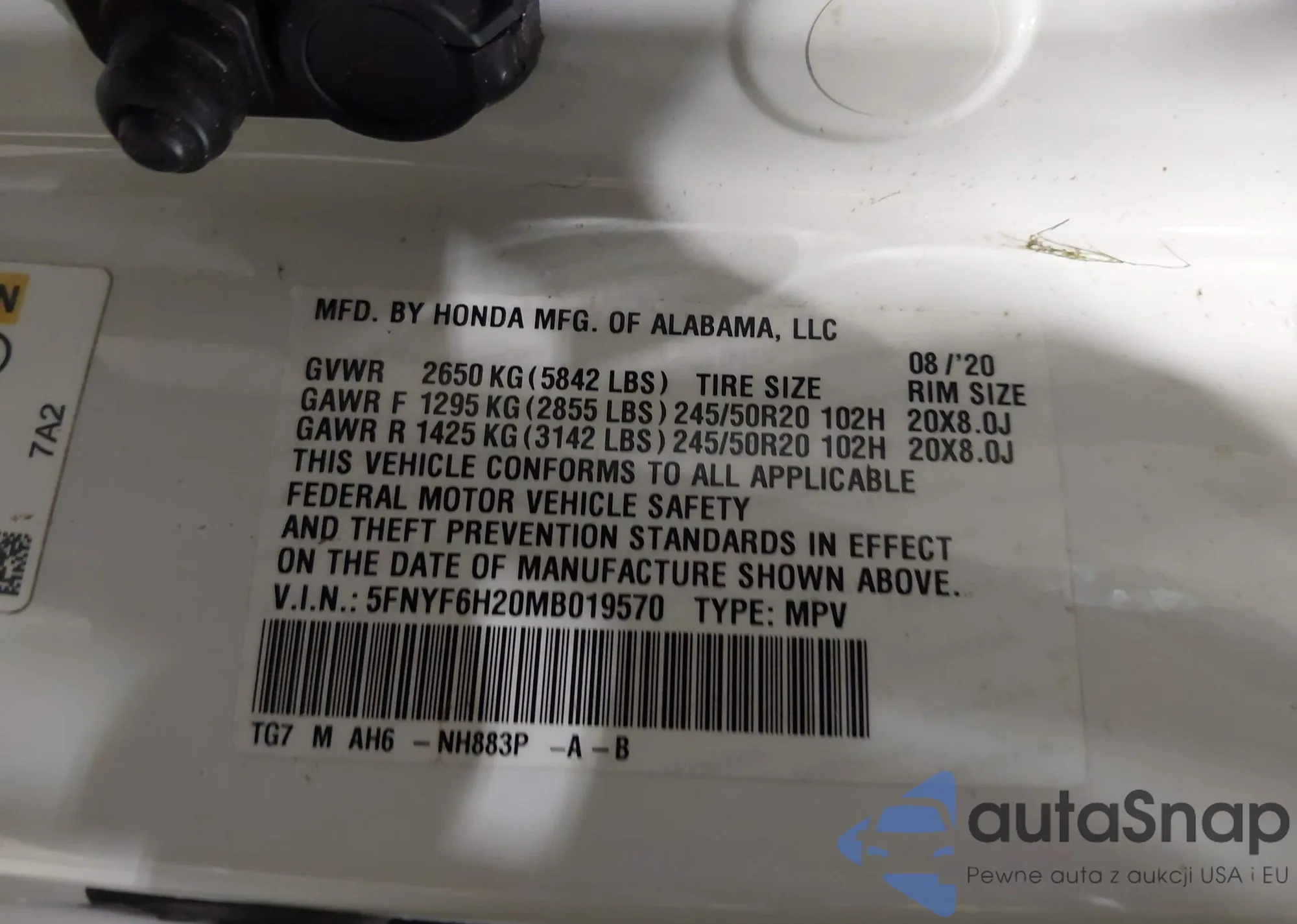 LOT: 43921200 VIN: JHLRD68566C007043
