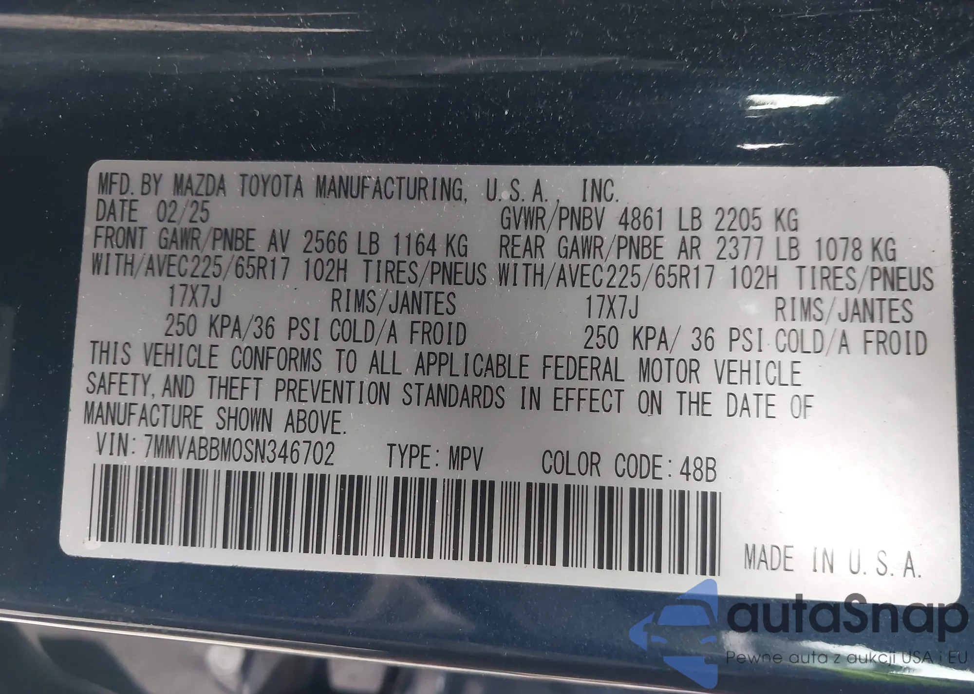 • VIN 7MMVABBM0SN346702