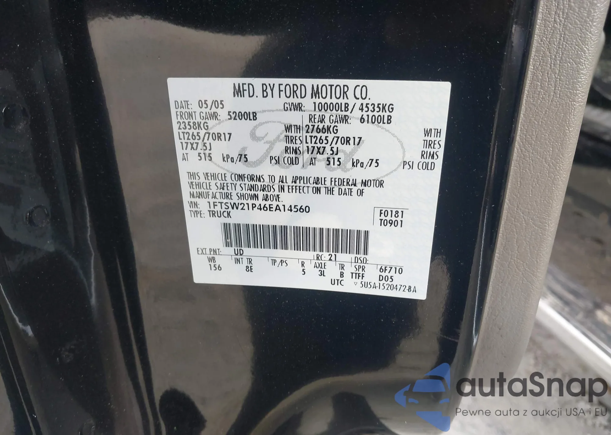 • VIN 1FTSW21P46EA14560