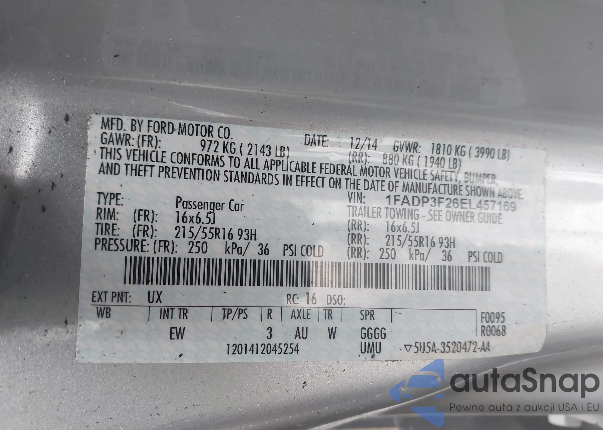 LOT: 43855944 VIN: 3FAHP06Z57R102527