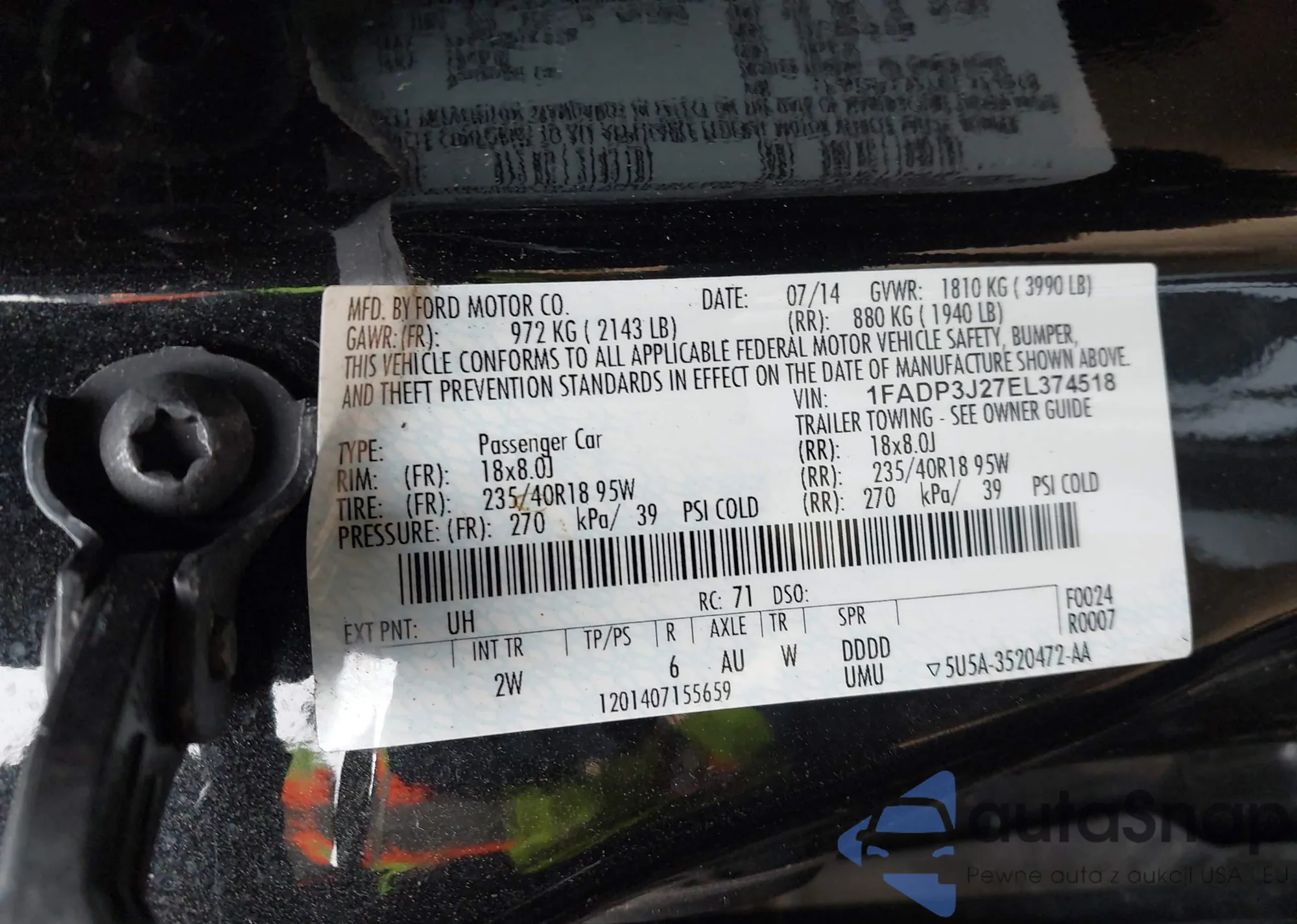 LOT: 44010638 VIN: 1FADP3J27EL374518