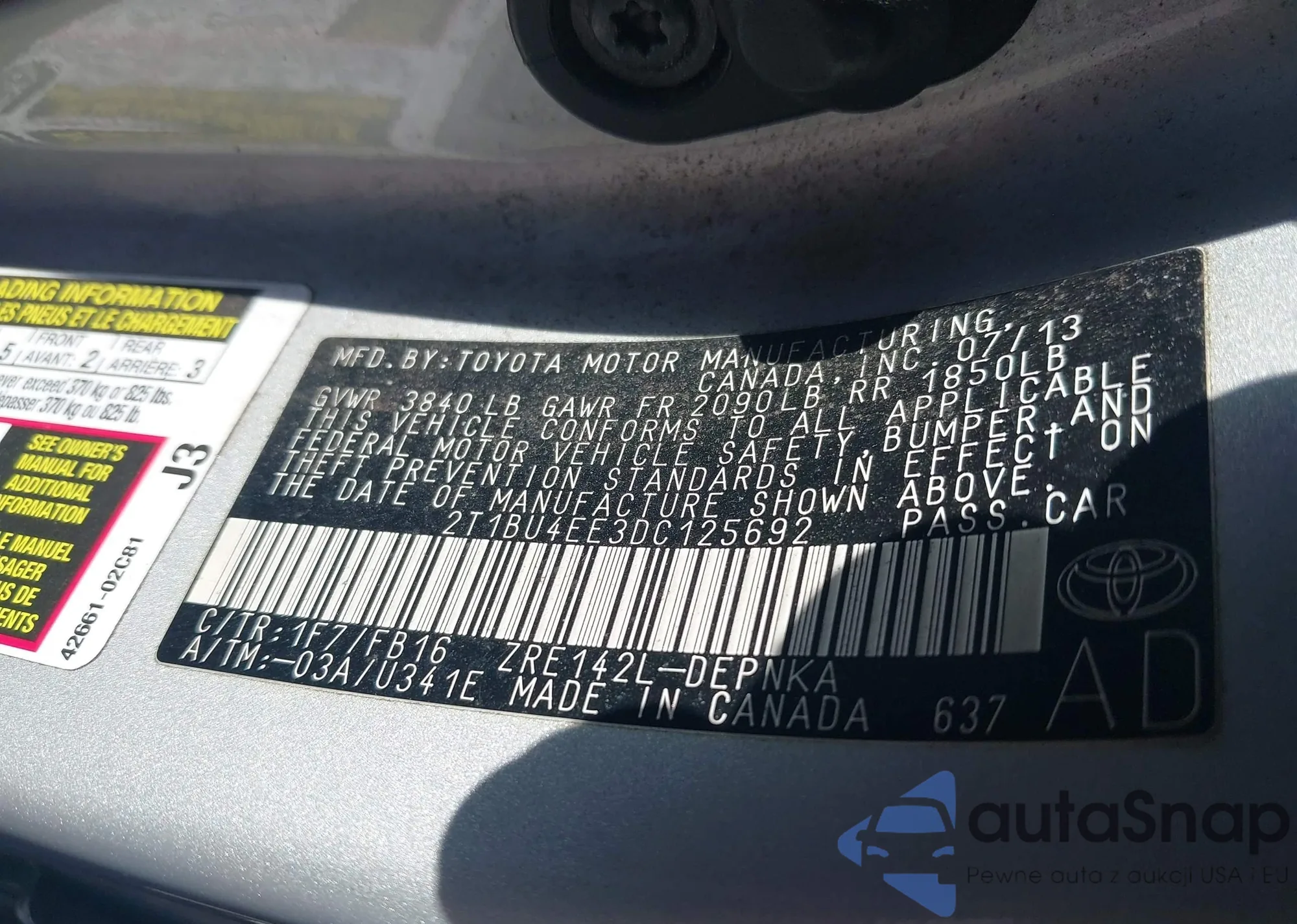 • VIN 2T1BU4EE3DC125692