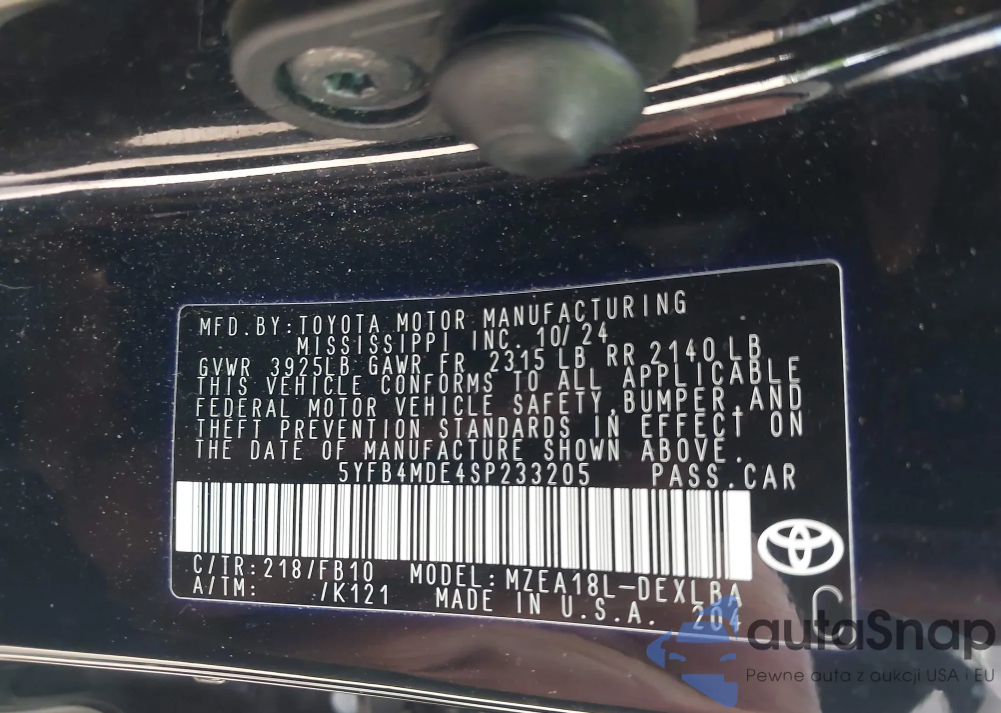 • VIN 5YFB4MDE4SP233205