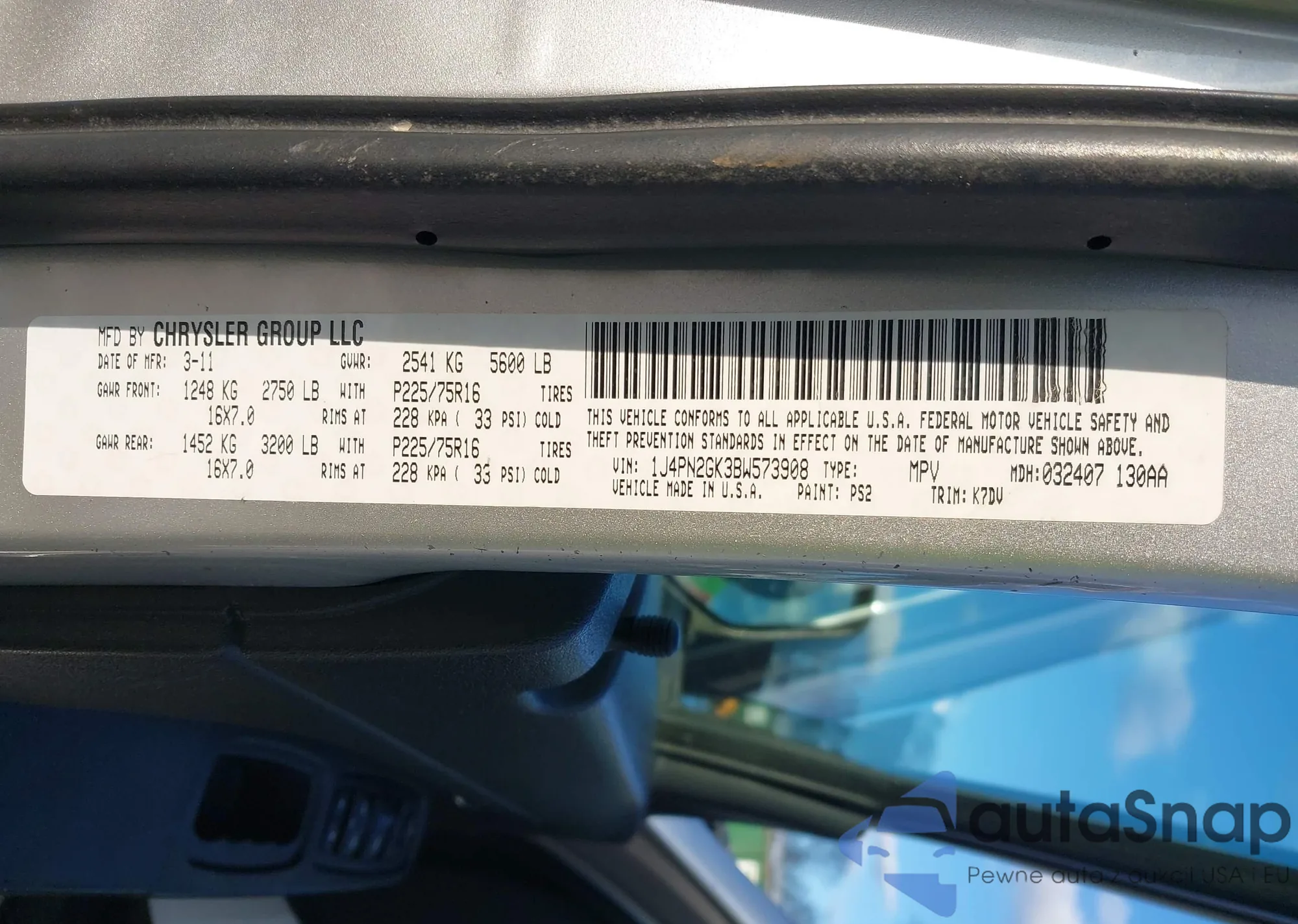 • VIN 1J4PN2GK3BW573908
