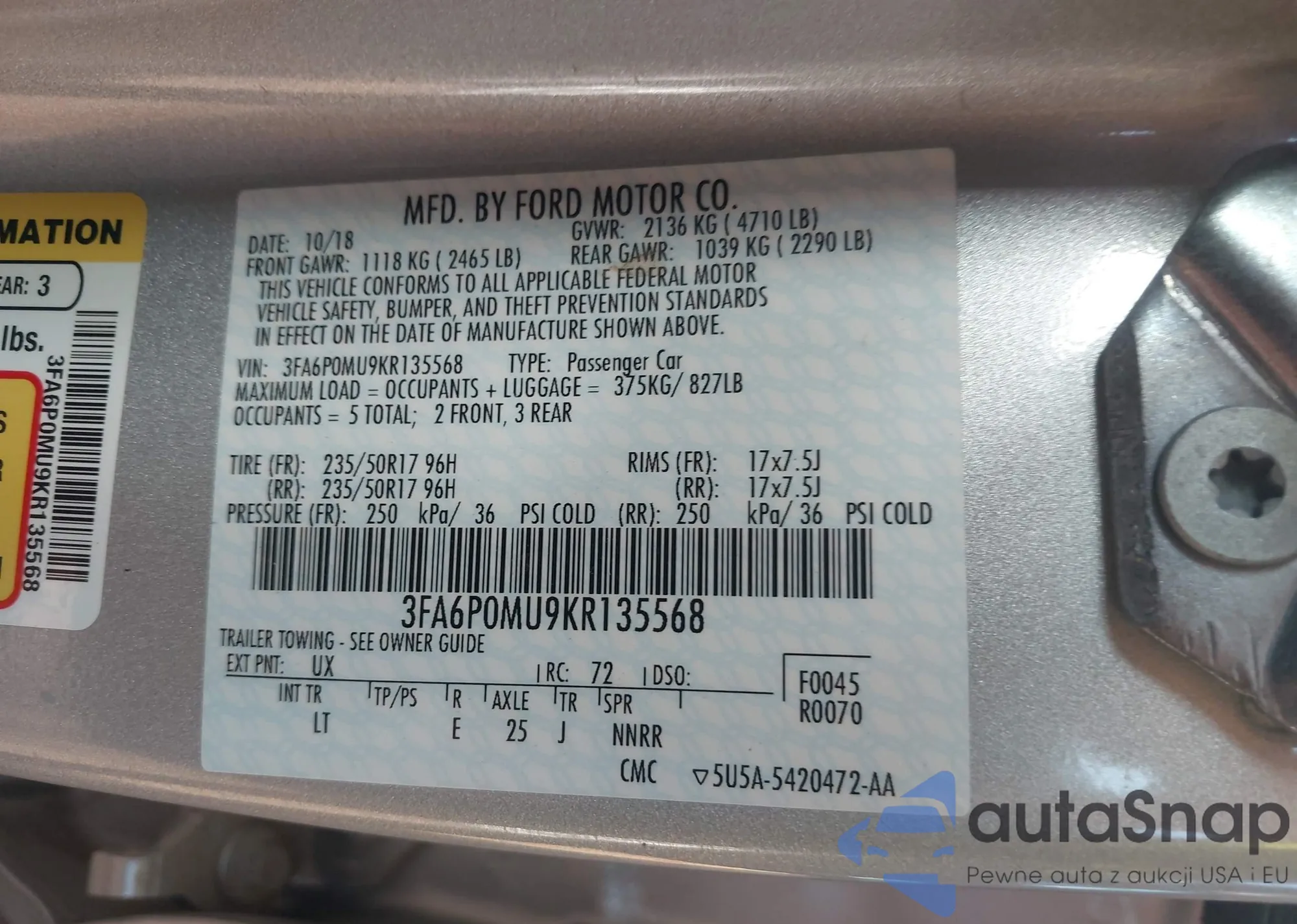 • VIN 3FA6P0MU9KR135568