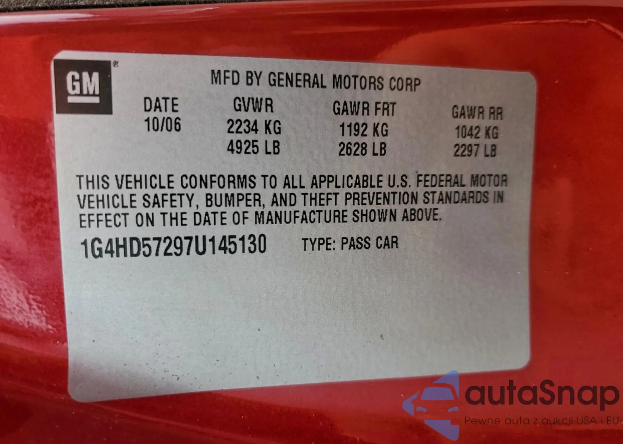 LOT: 96999365 VIN: 2G4WD582281142511