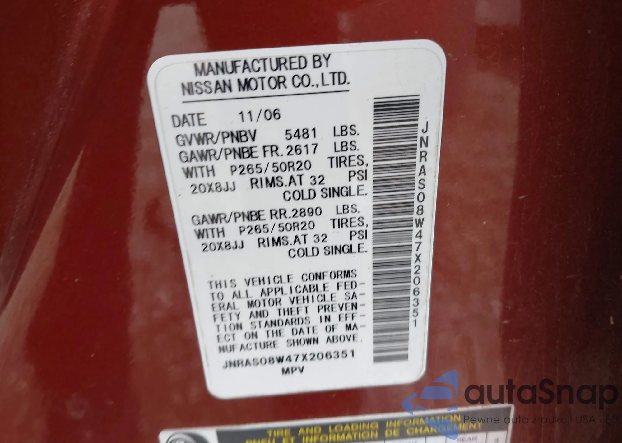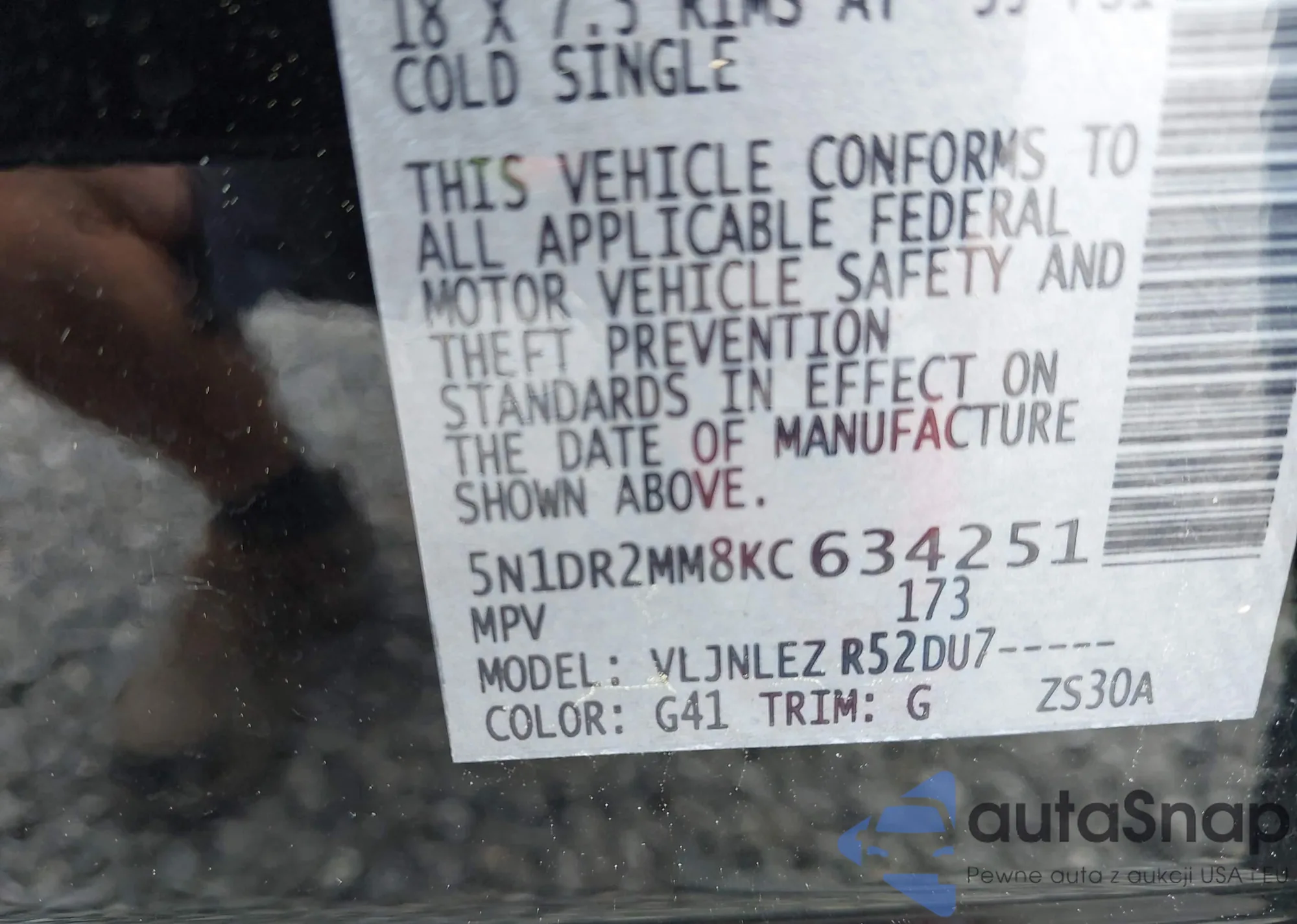 LOT: 43378676 VIN: JN8AY2NC4K9581551
