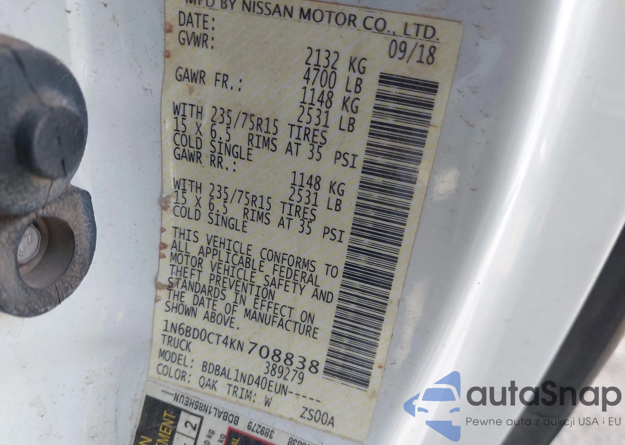 • VIN 1N6BD0CT4KN708838