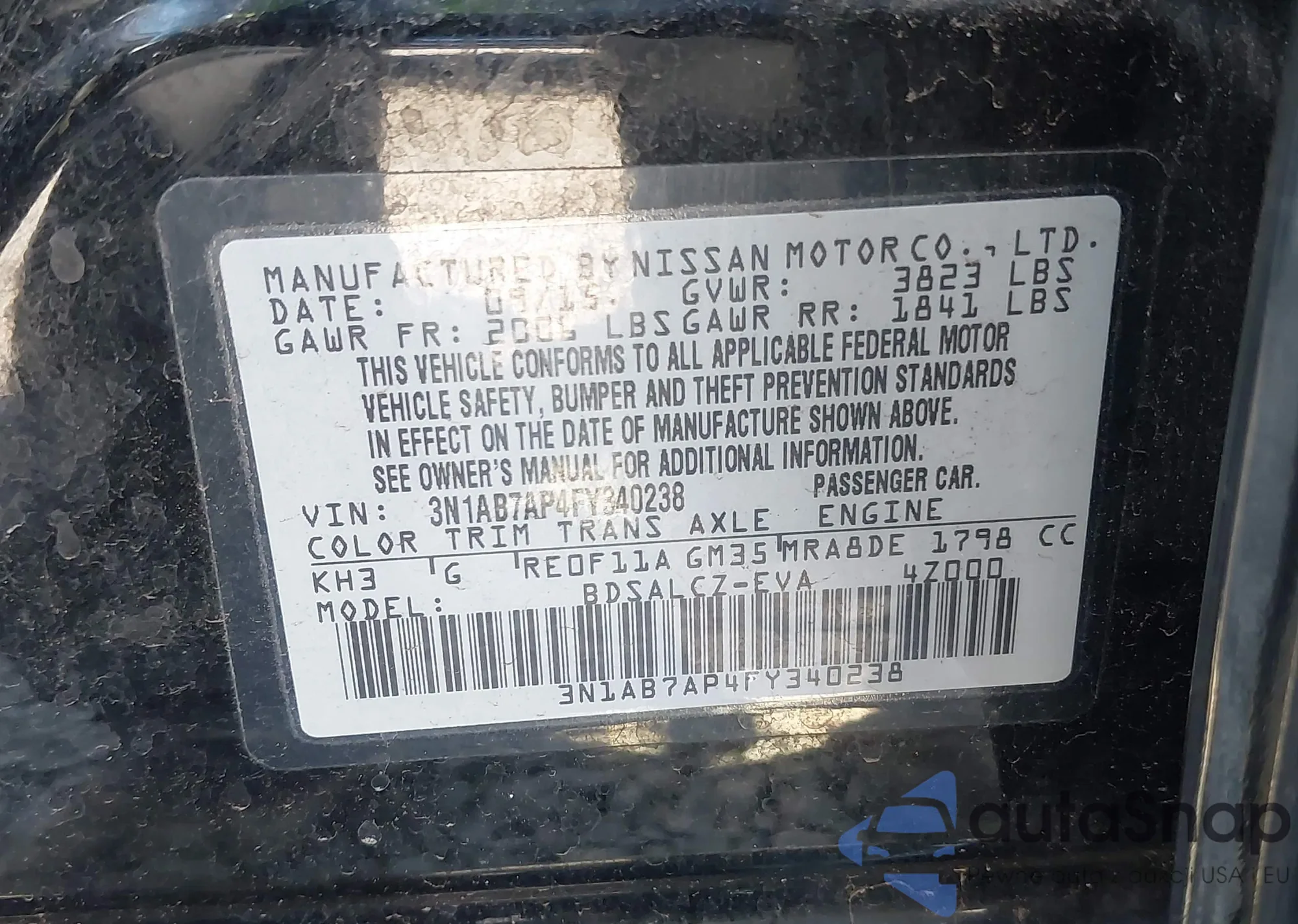 LOT: 43188752 VIN: 3N1AB7AP4FY340238