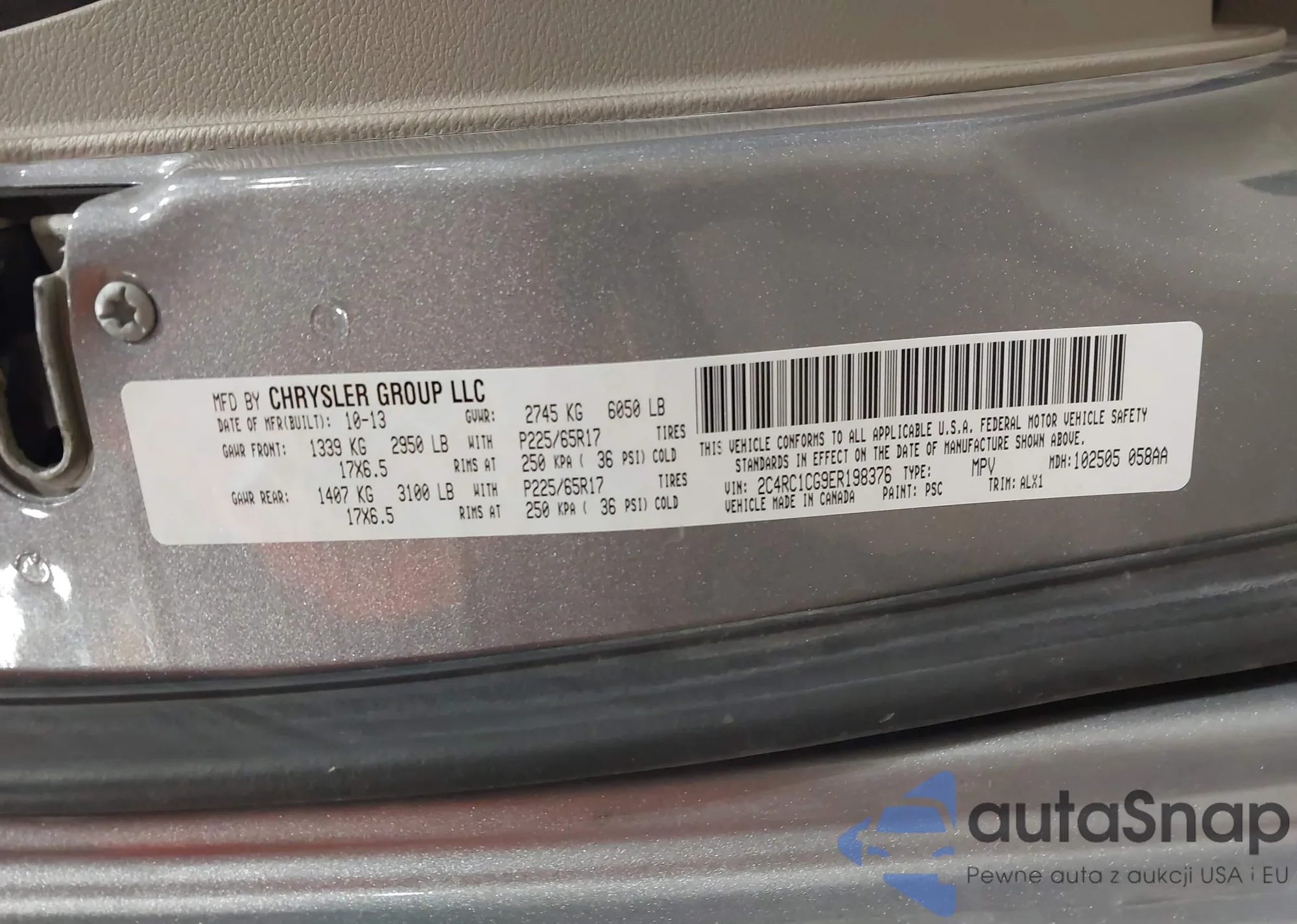 LOT: 43502547 VIN: 2C4RC1CG9ER198376