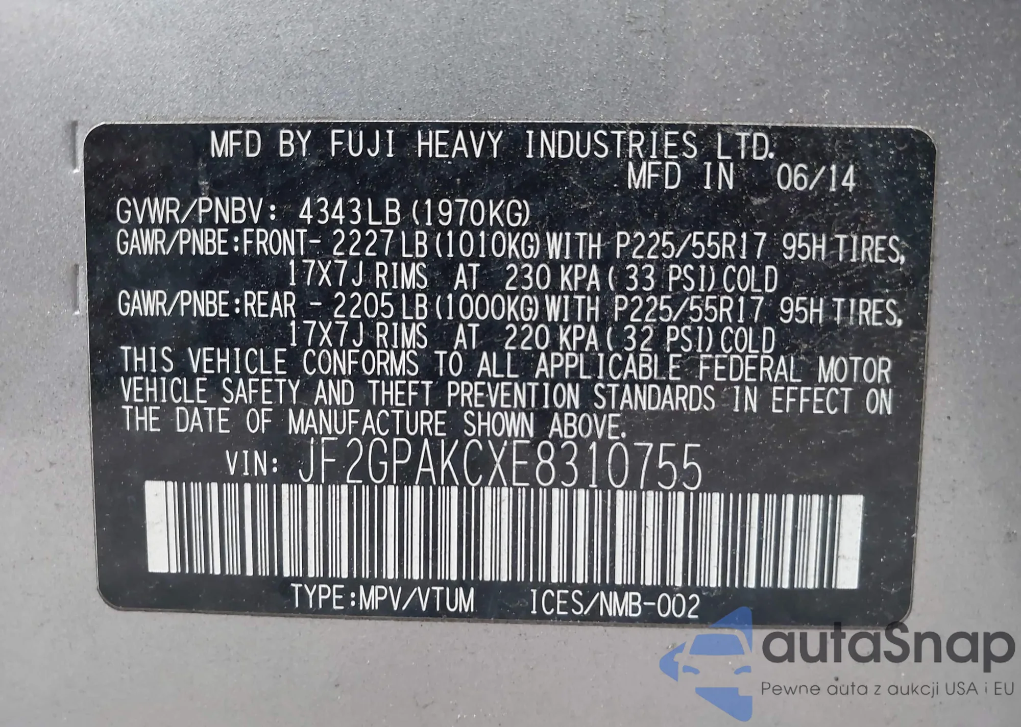 LOT: 43257628 VIN: 5FNYF8H58SB015270