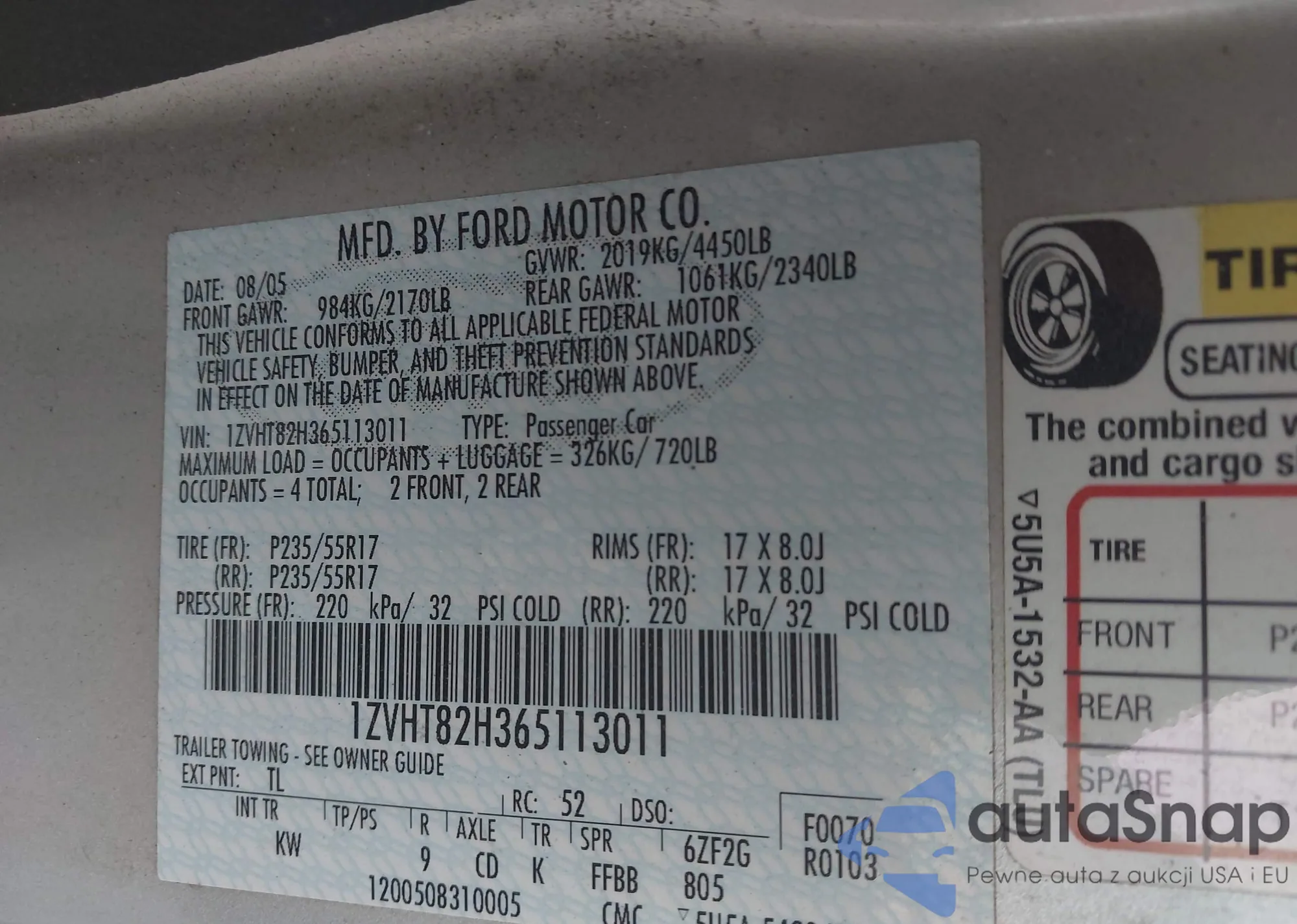 • VIN 1ZVHT82H365113011