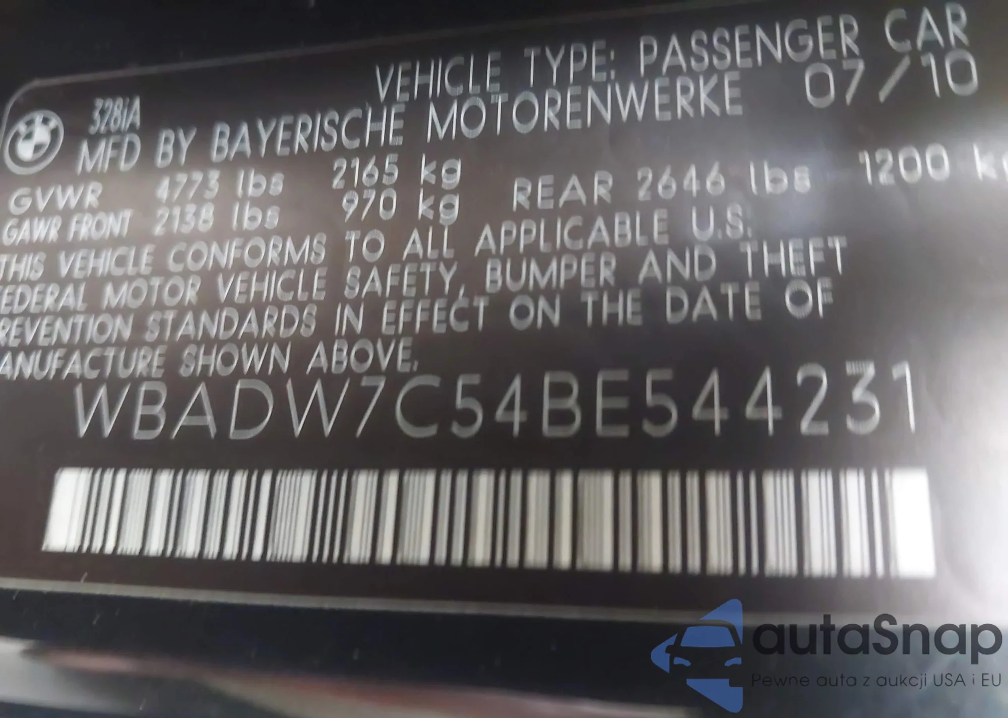 LOT: 43765940 VIN: WBADW7C54BE544231
