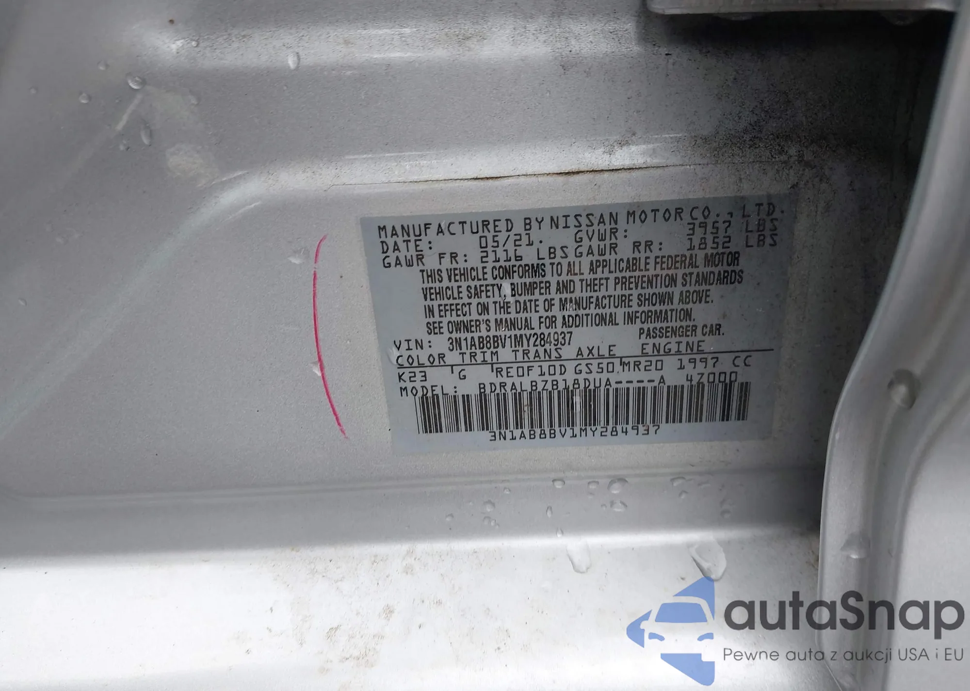 • VIN 3N1AB8BV1MY284937