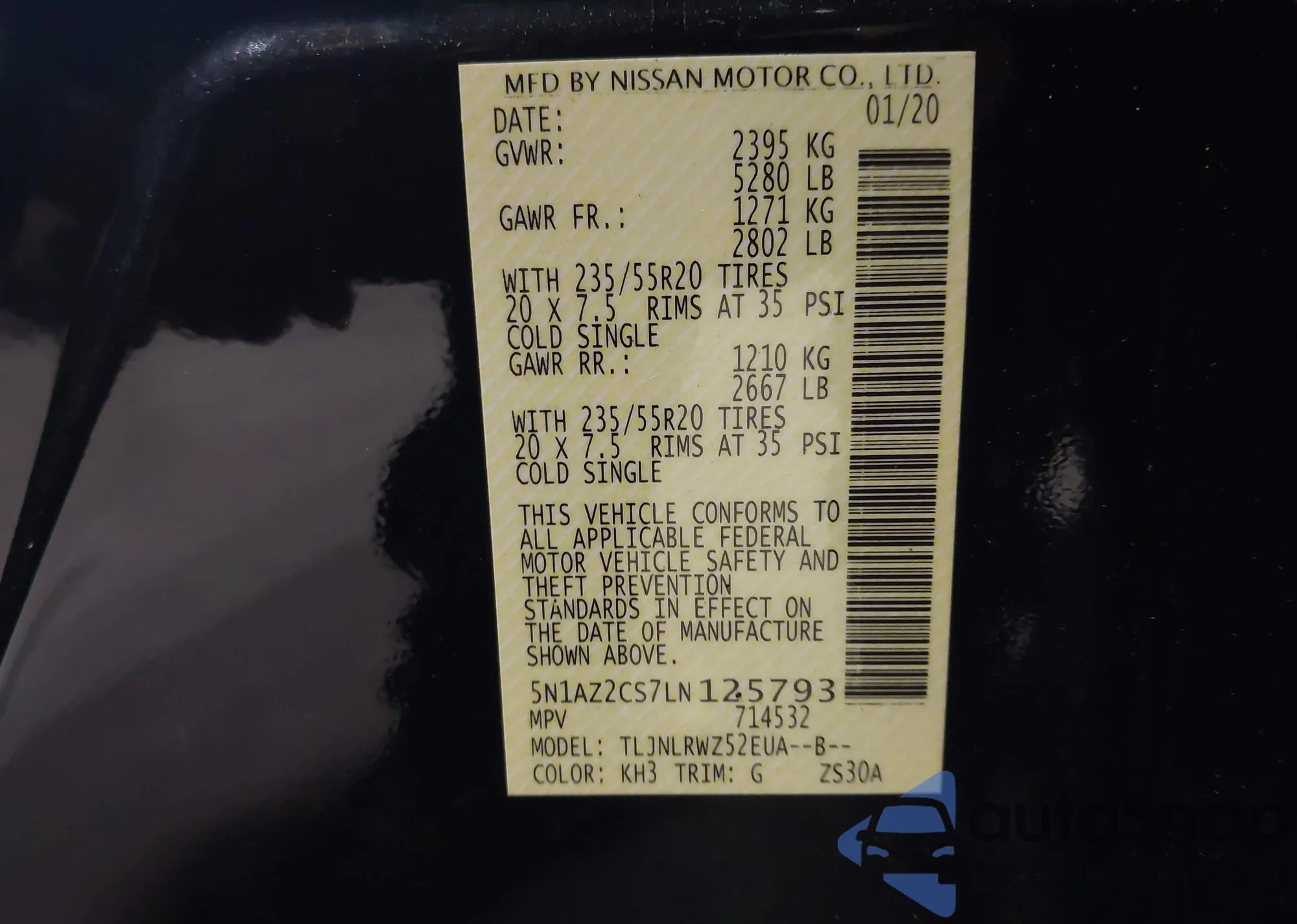 • VIN 1N4BL4DVXSN401709