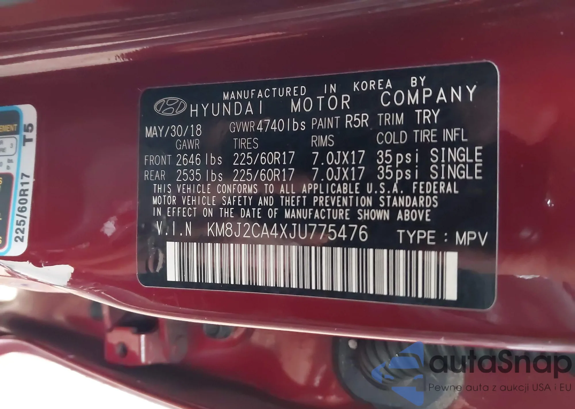 • VIN KM8J2CA4XJU775476