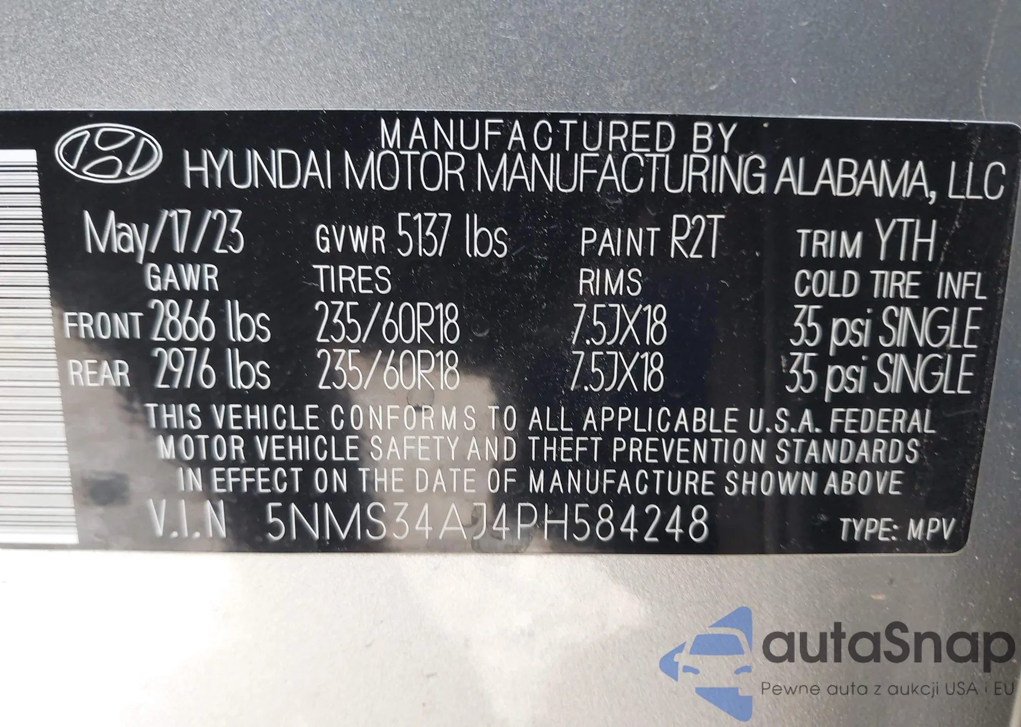LOT: 43390264 VIN: WA1VAAF74HD052226