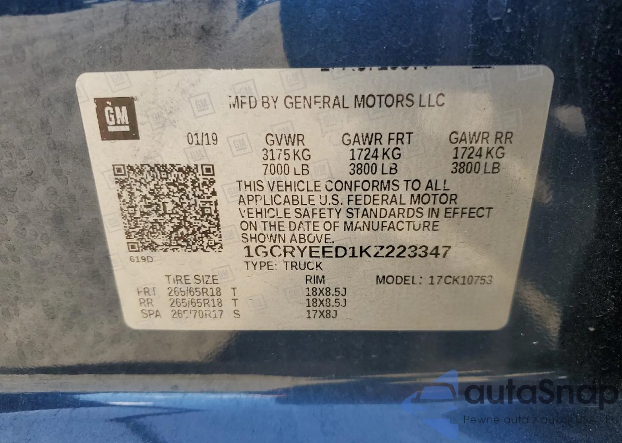 • VIN 1GCRYEED1KZ223347