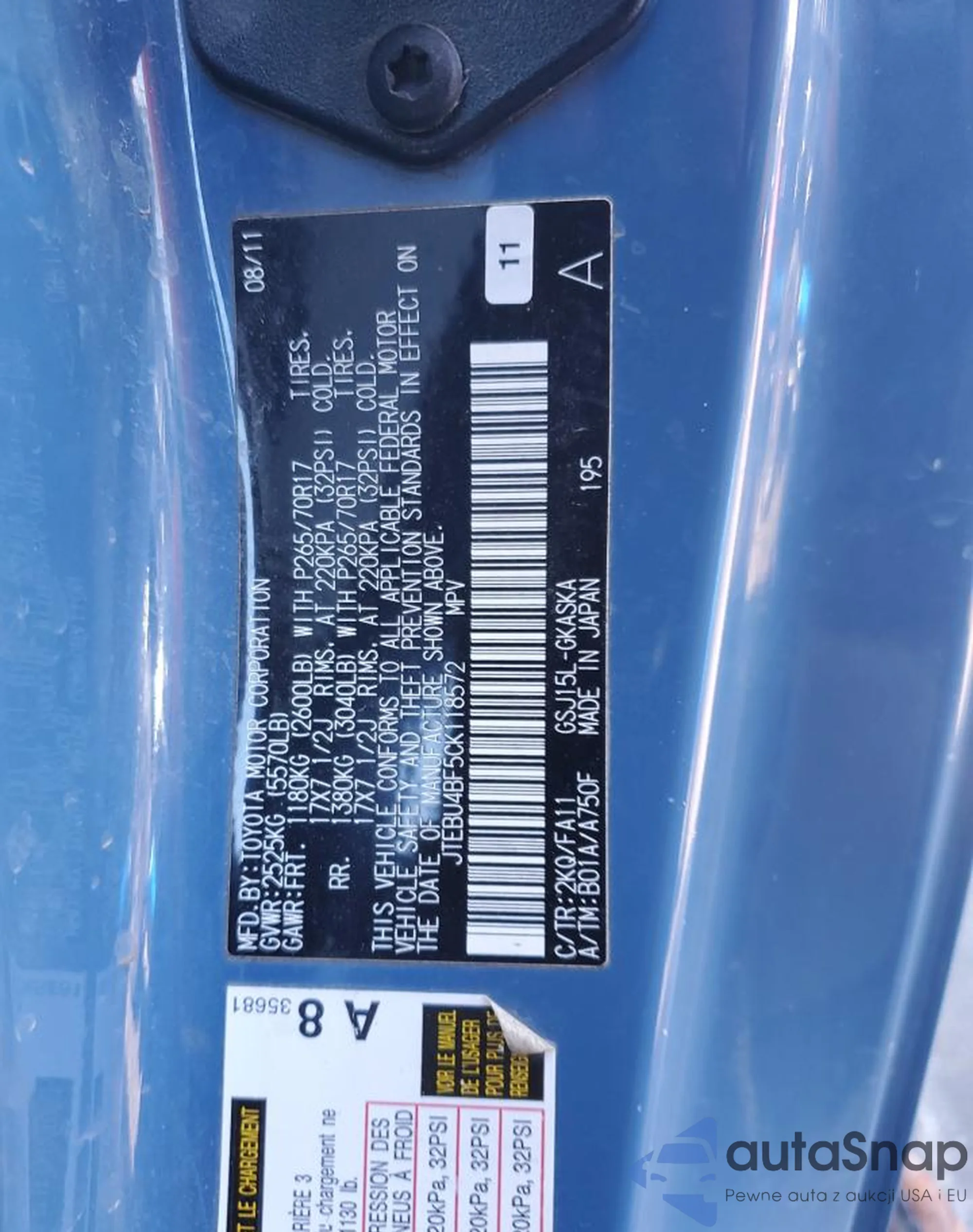 LOT: 91430655 VIN: JTEBU4BF5CK118572