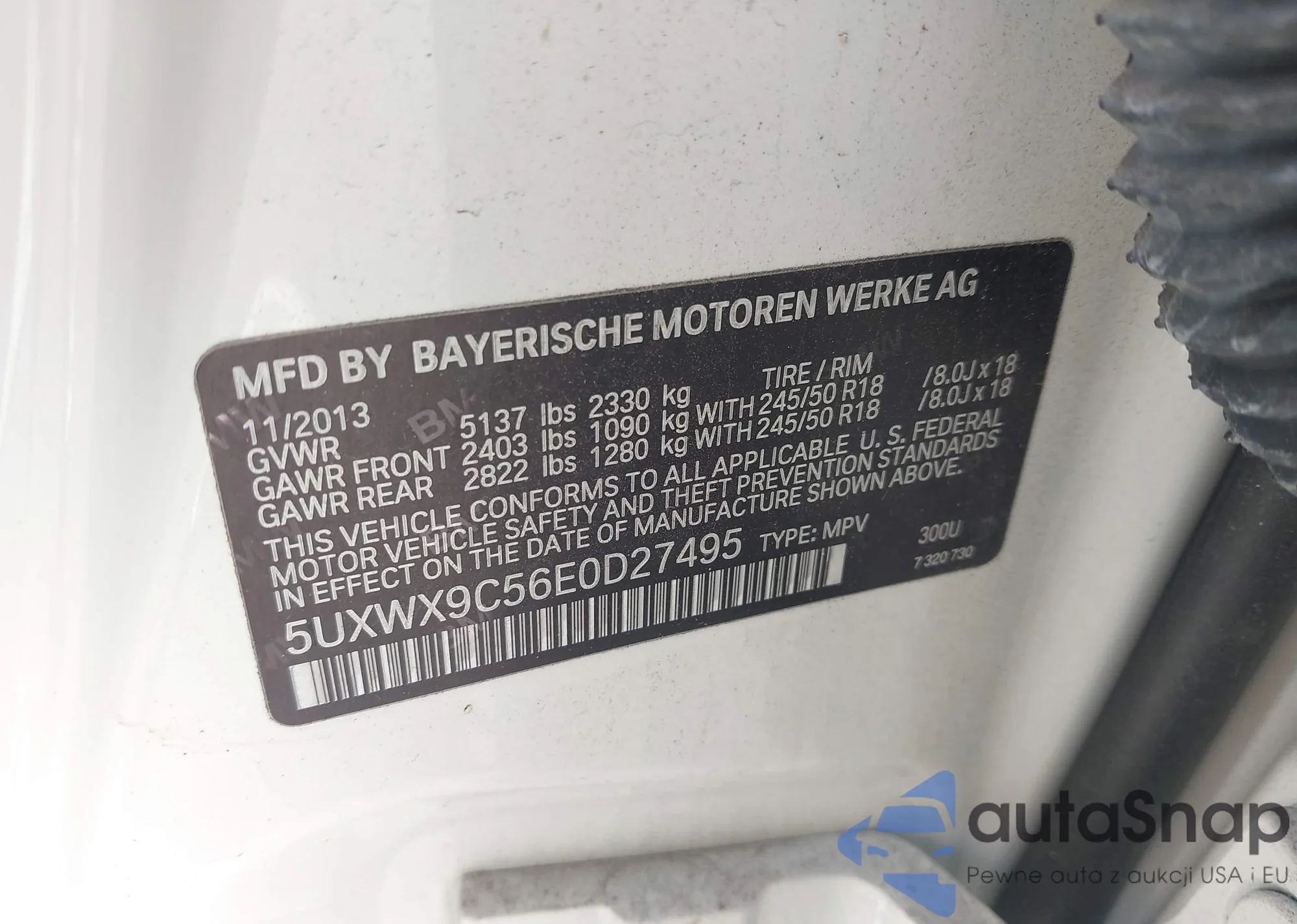 • VIN 5UXWX9C56E0D27495