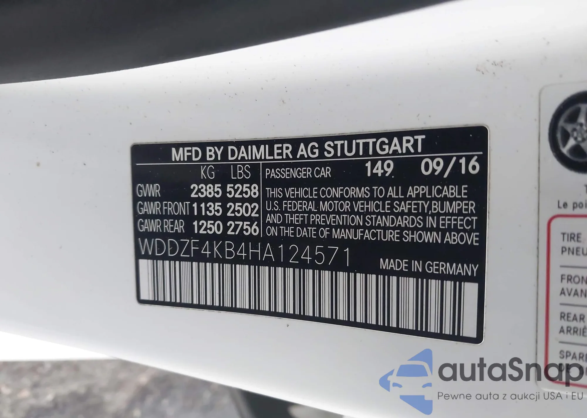 • VIN WDDZF4KB4HA124571