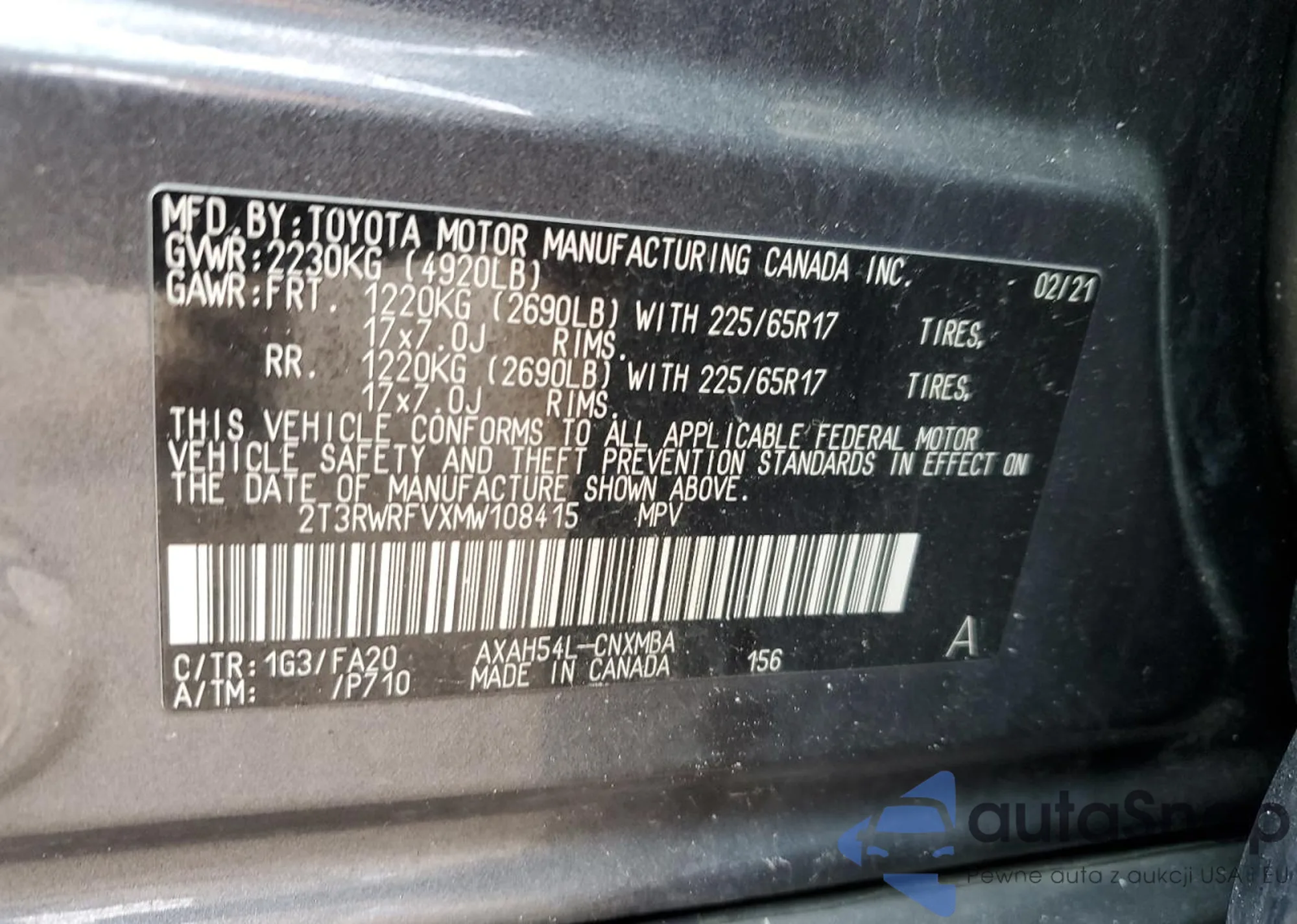 LOT: 92568085 VIN: 2T3RWRFVXMW108415