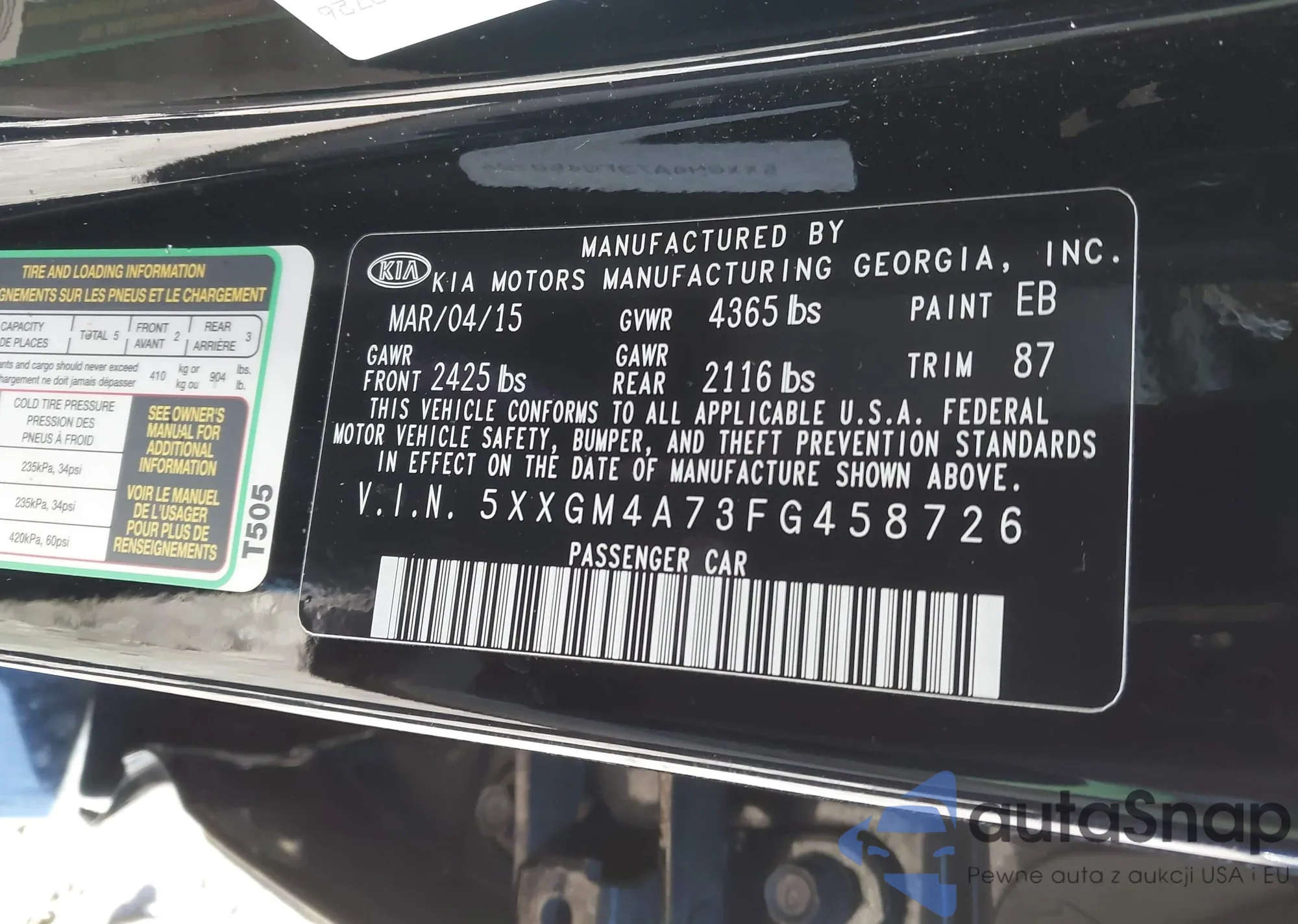 LOT: 43801358 VIN: 5XXGM4A73FG458726