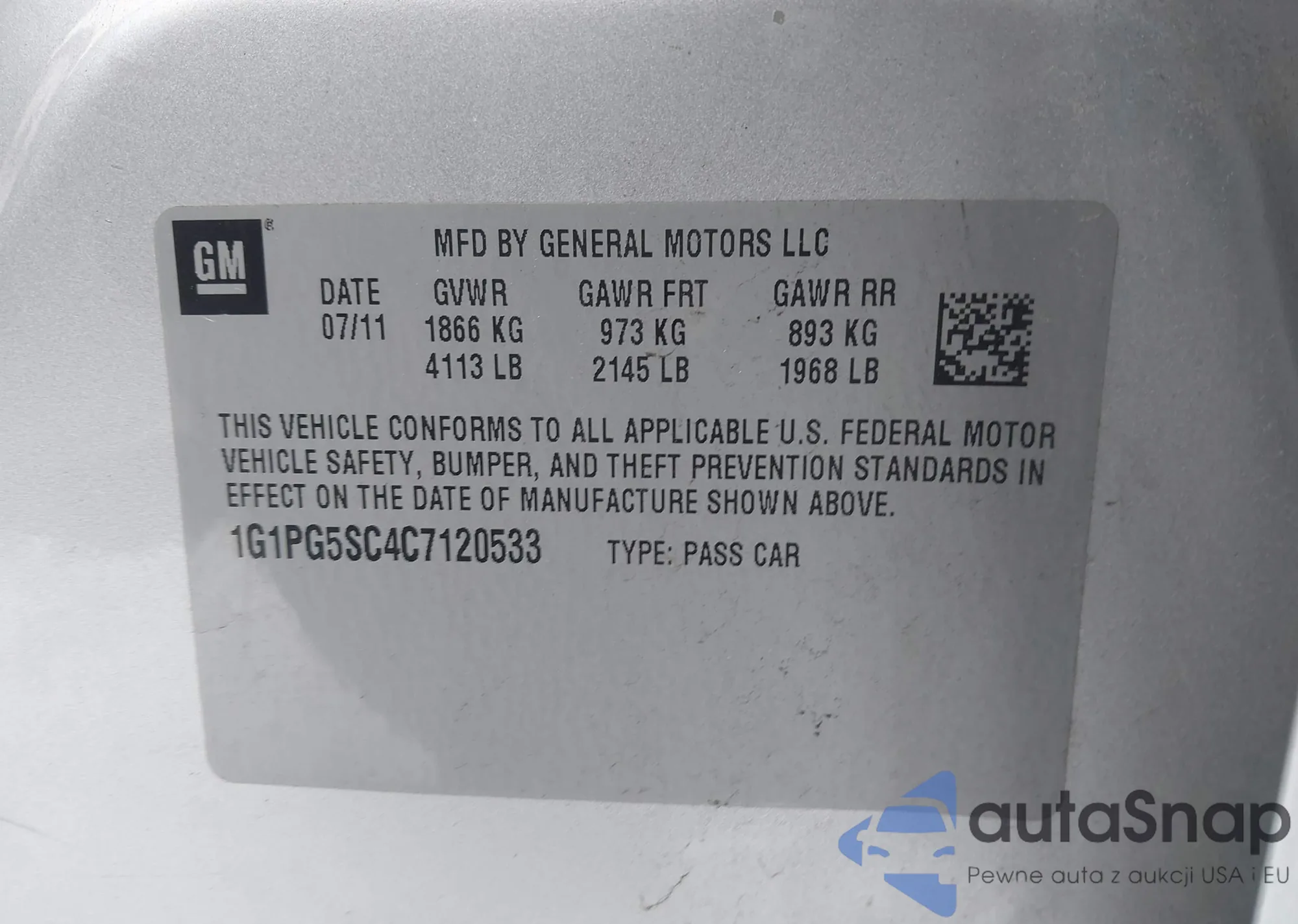 • VIN 1G1PG5SC4C7120533