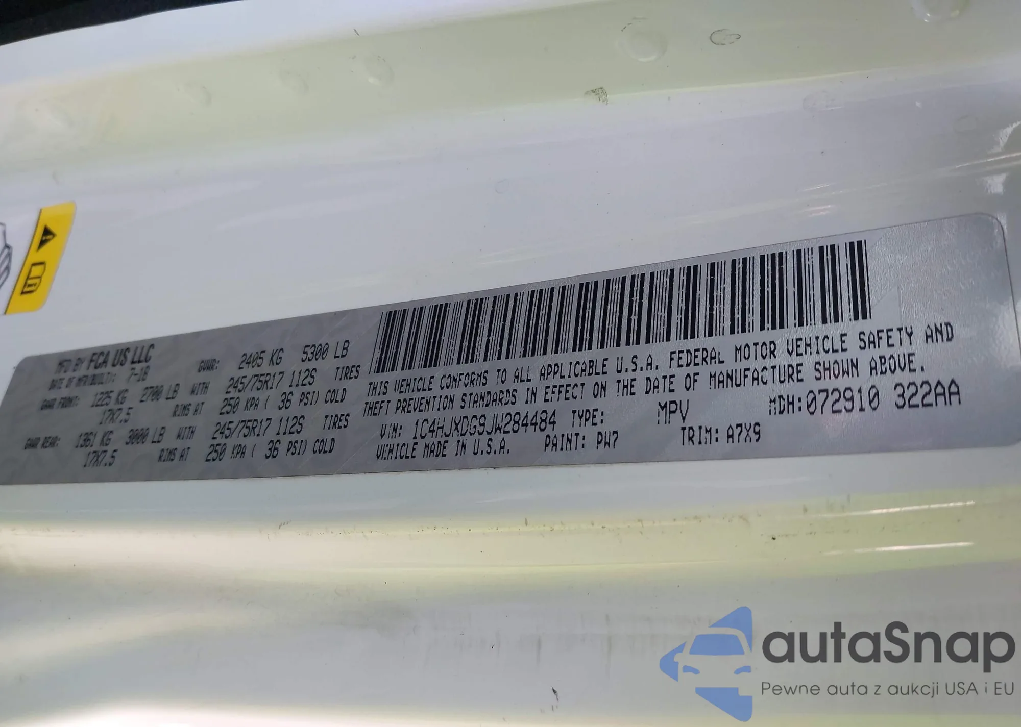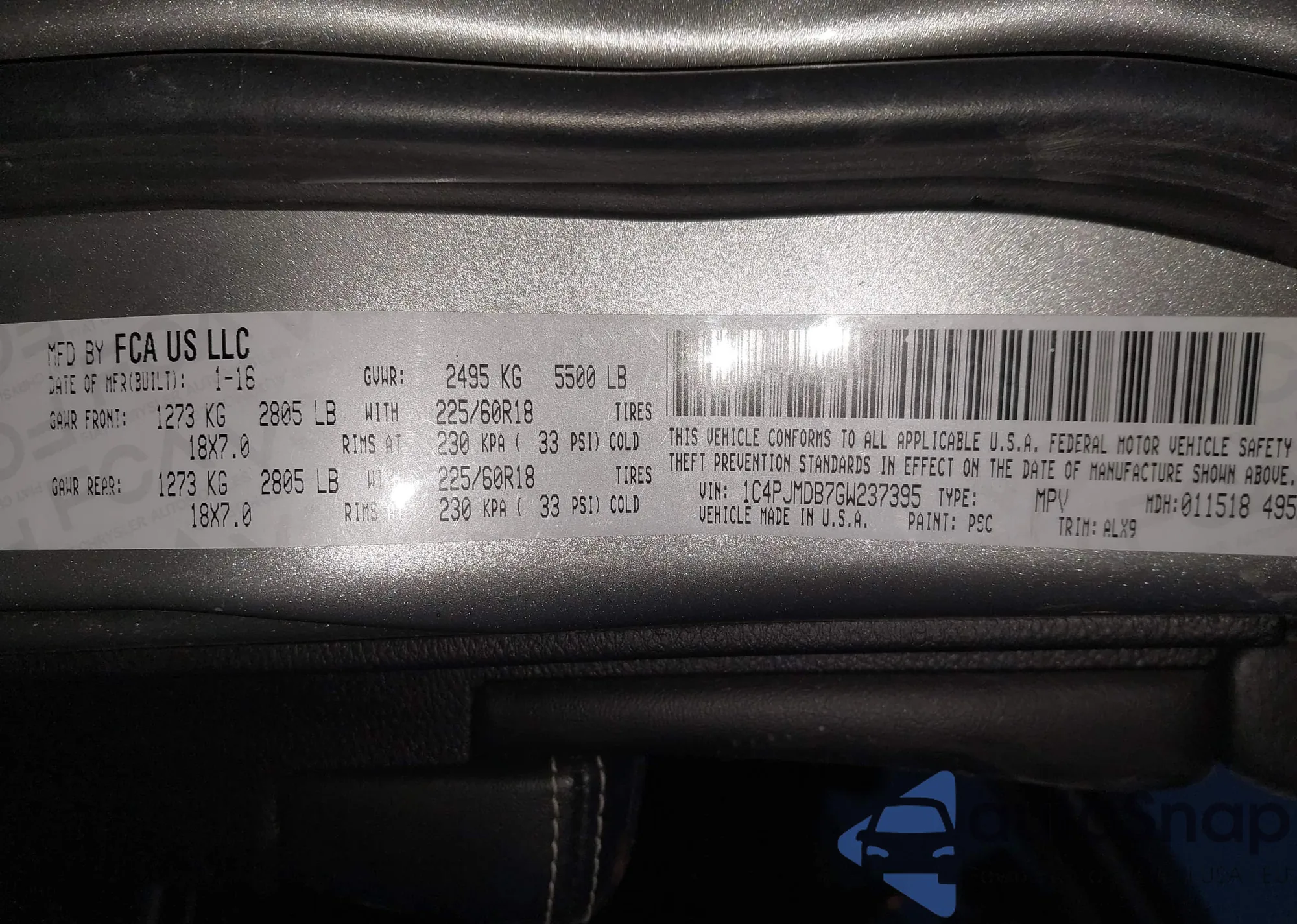 • VIN 1C4PJMDB7GW237395