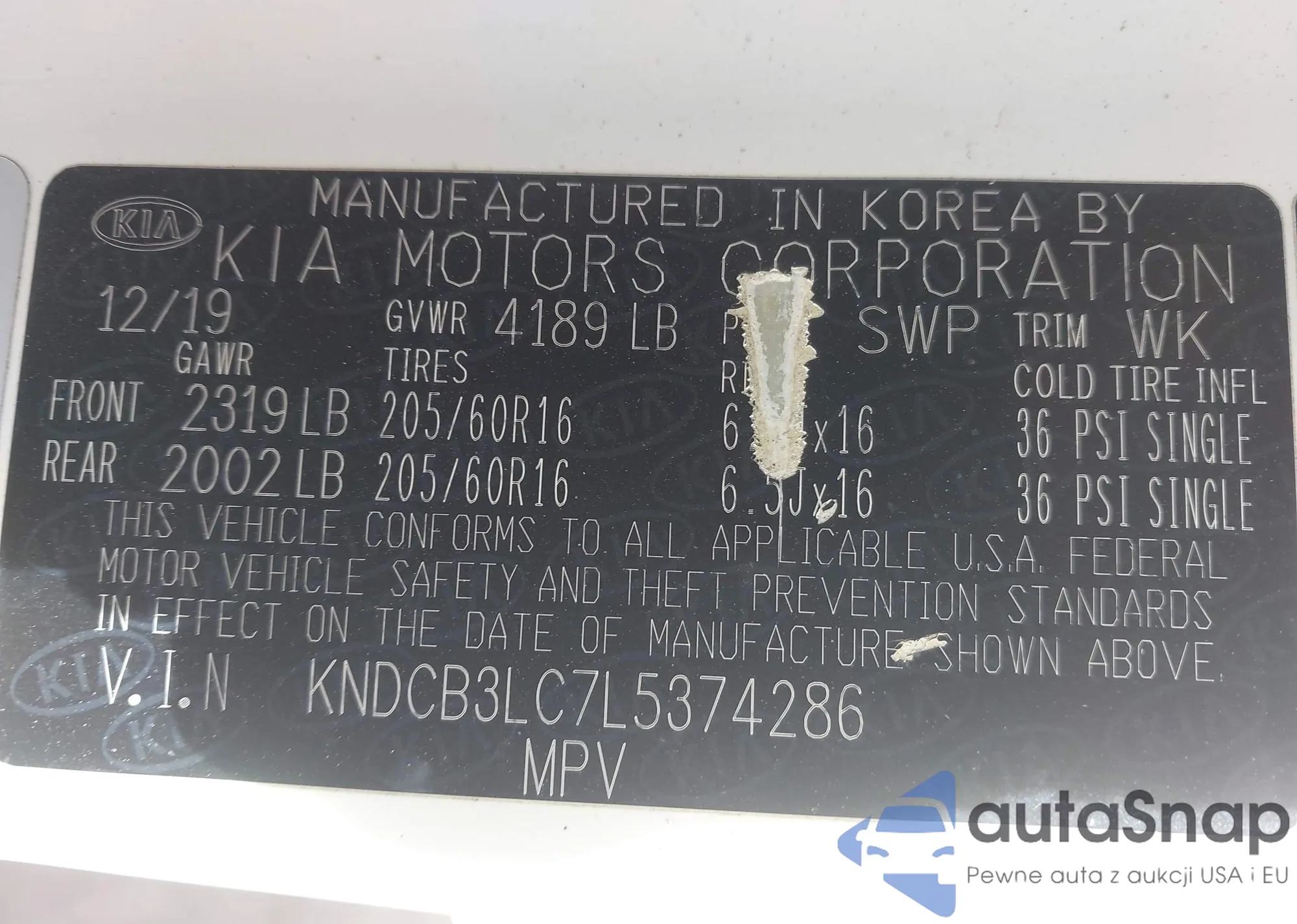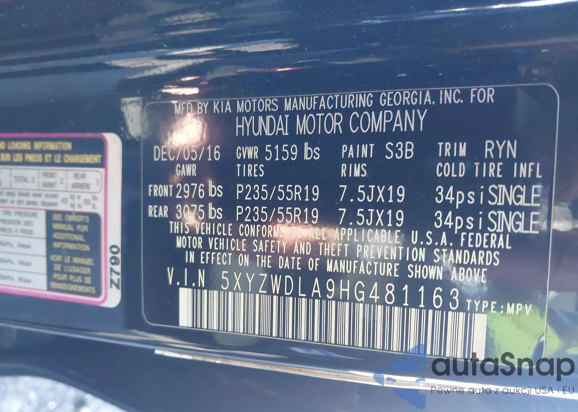 • VIN 5XYZWDLA9HG481163