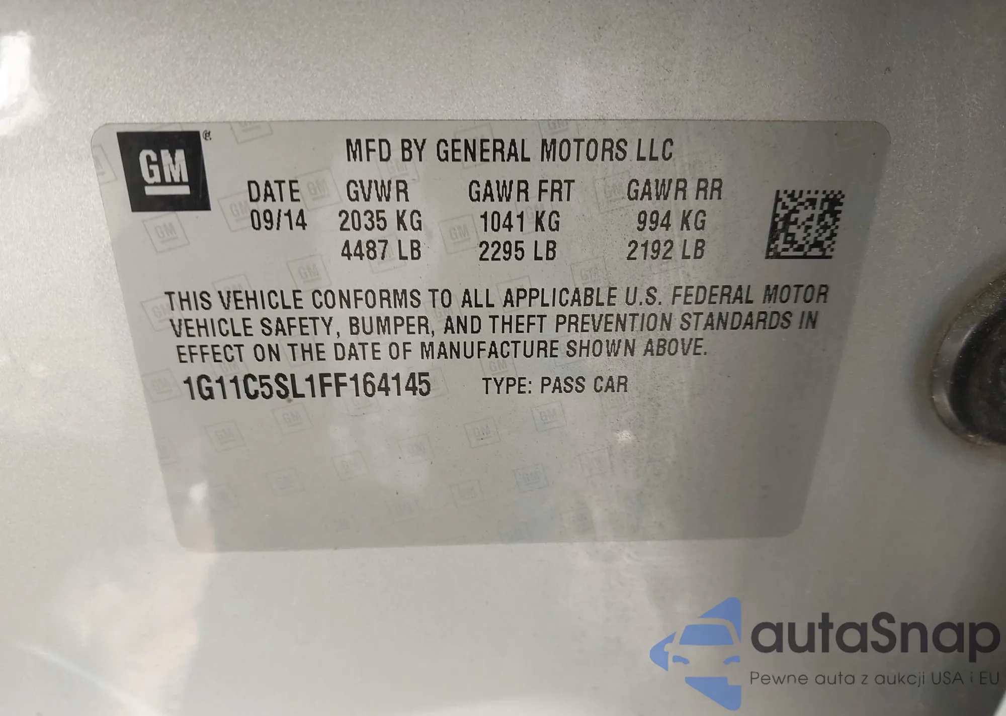 LOT: 43849199 VIN: 1G11C5SL1FF164145