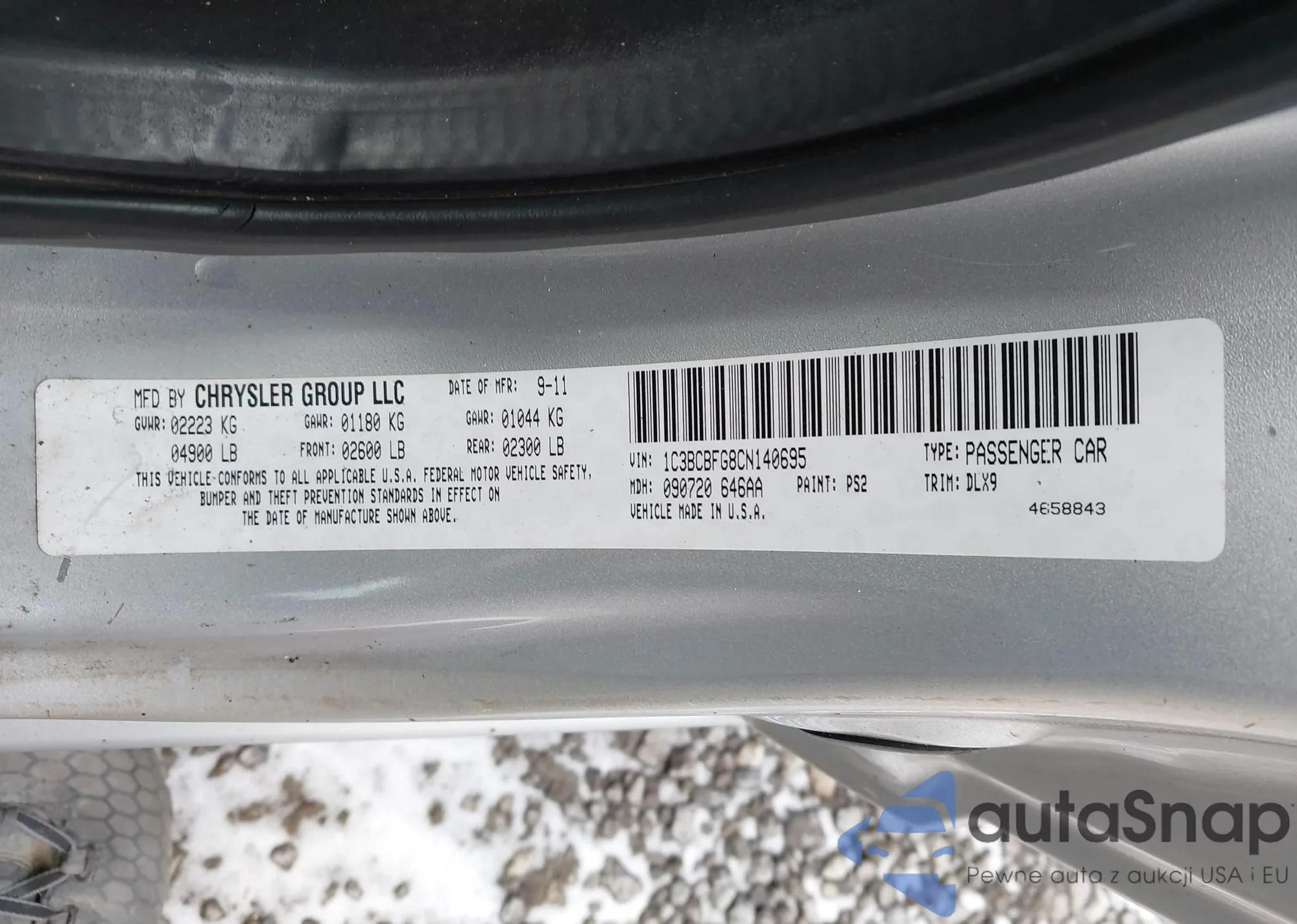 • VIN 1C3BCBFG8CN140695