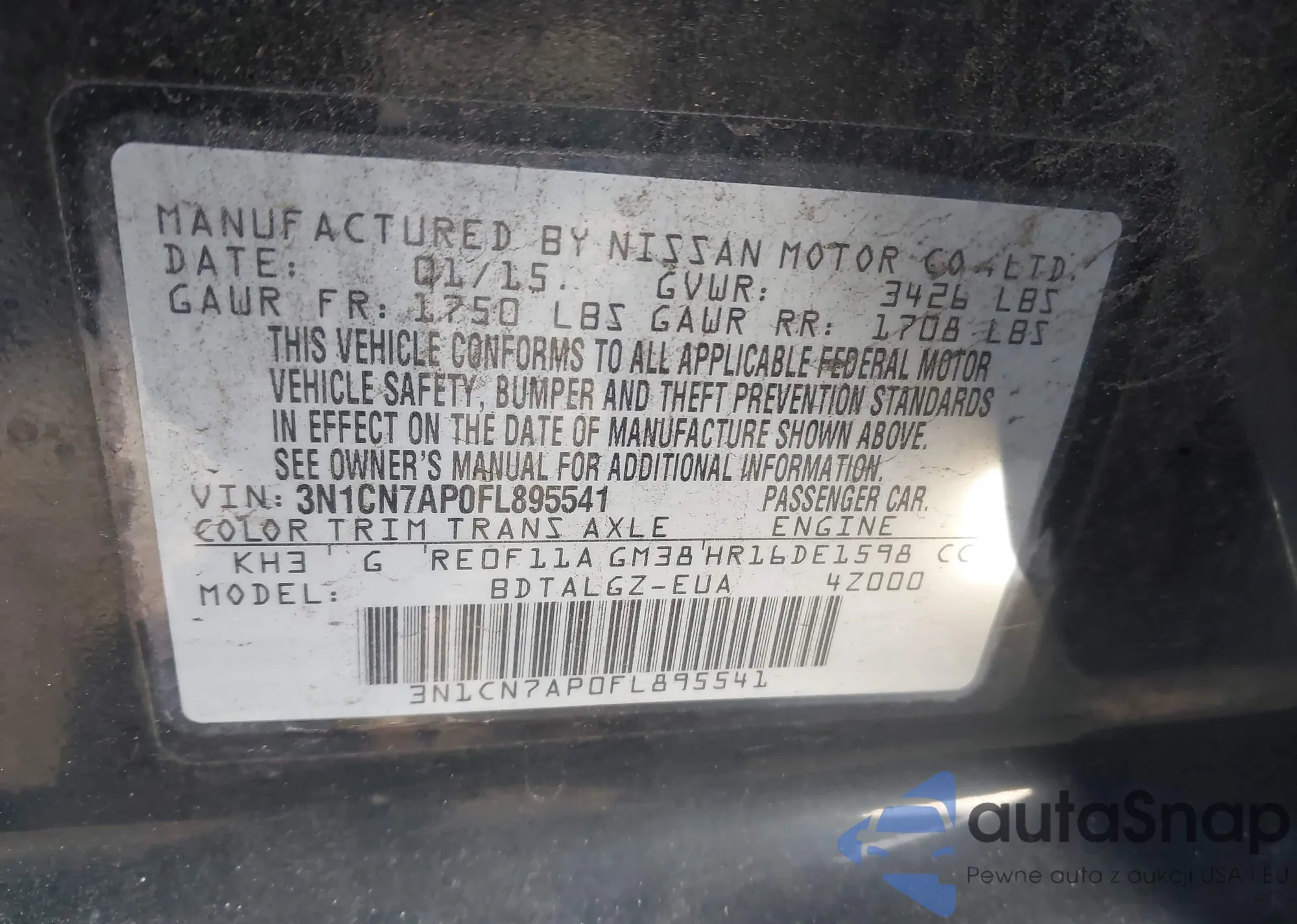 • VIN 3N1CN7AP0FL895541