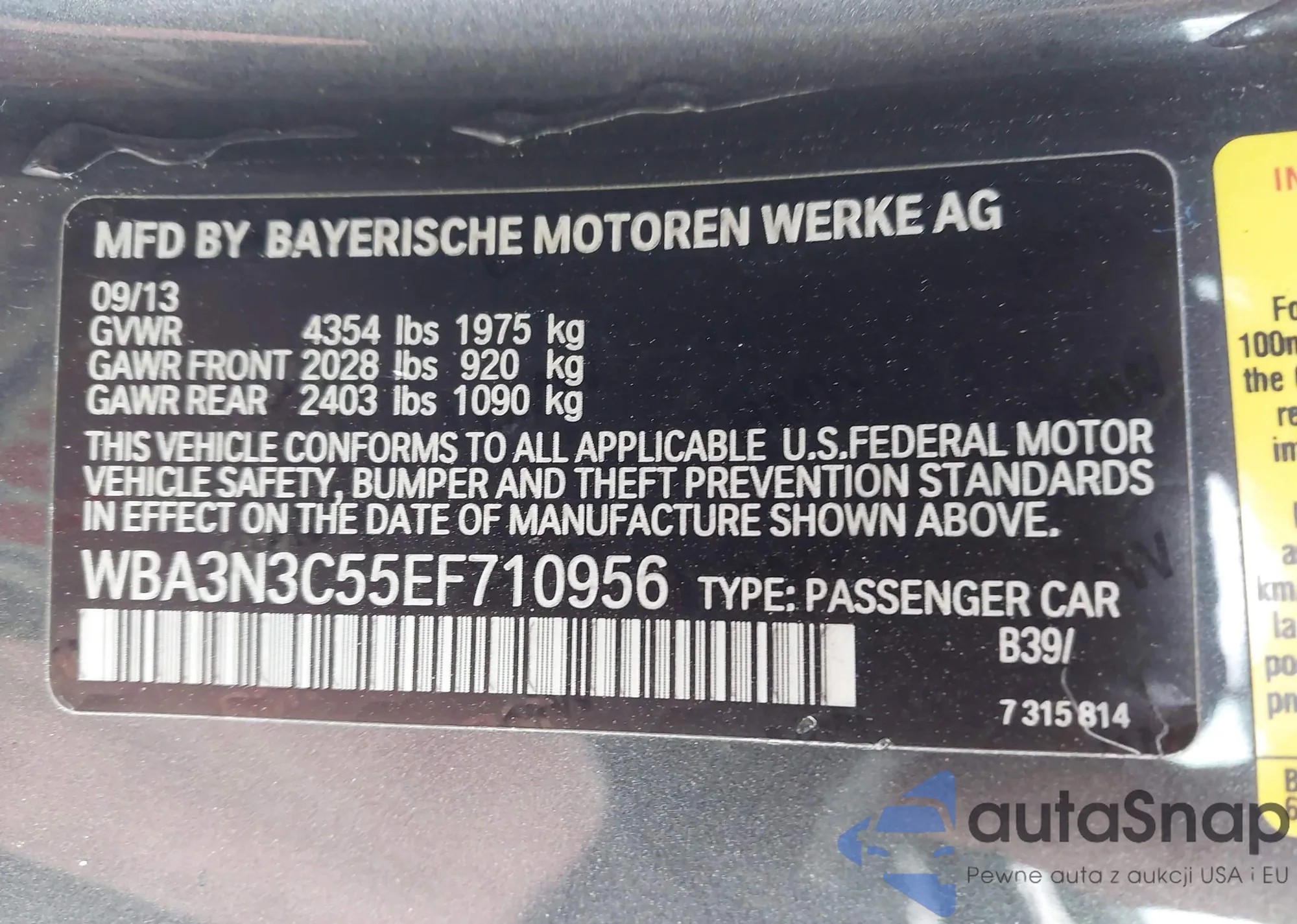 • VIN WBA3N3C55EF710956