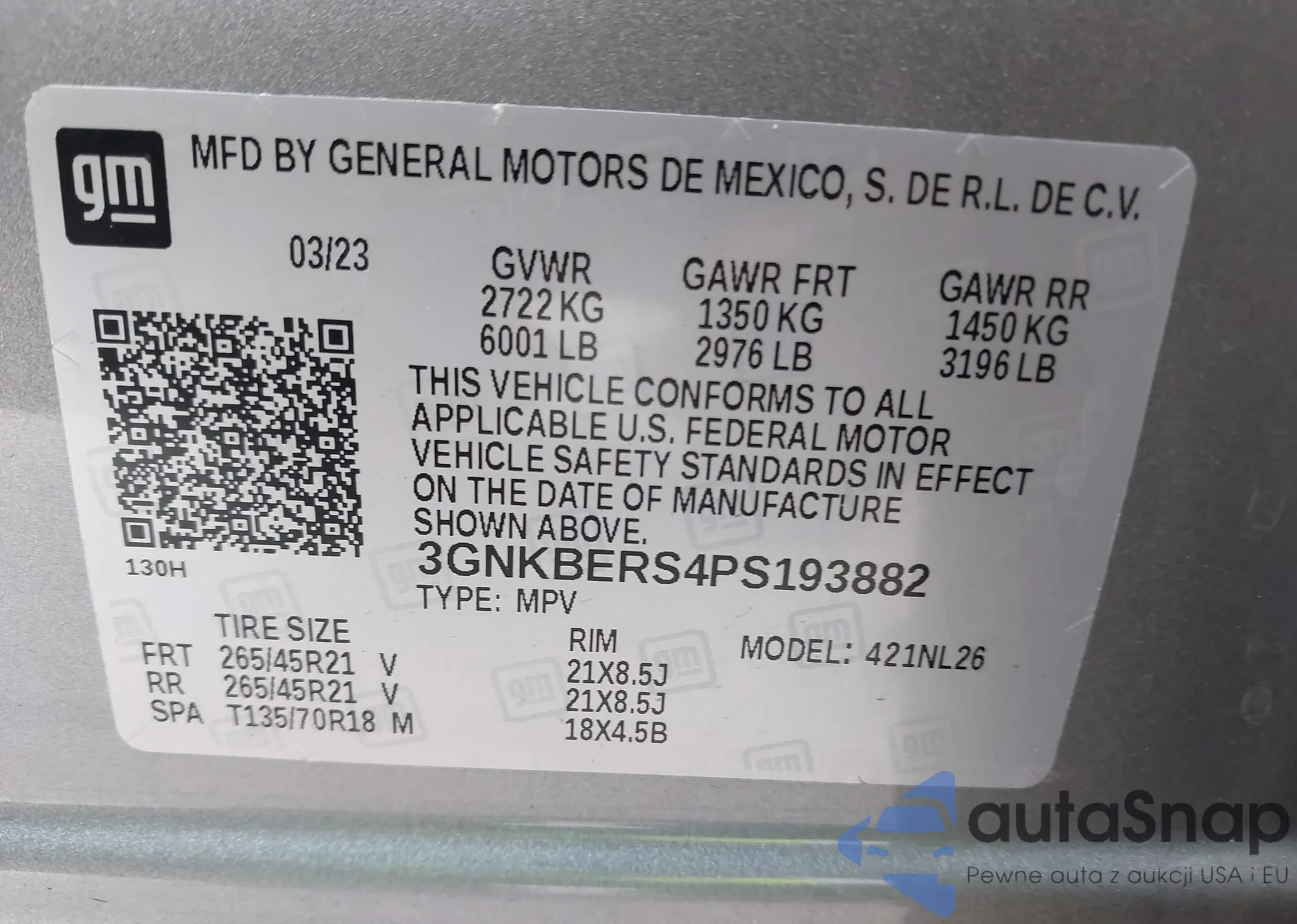 LOT: 43899841 VIN: 3GNKBERS4PS193882