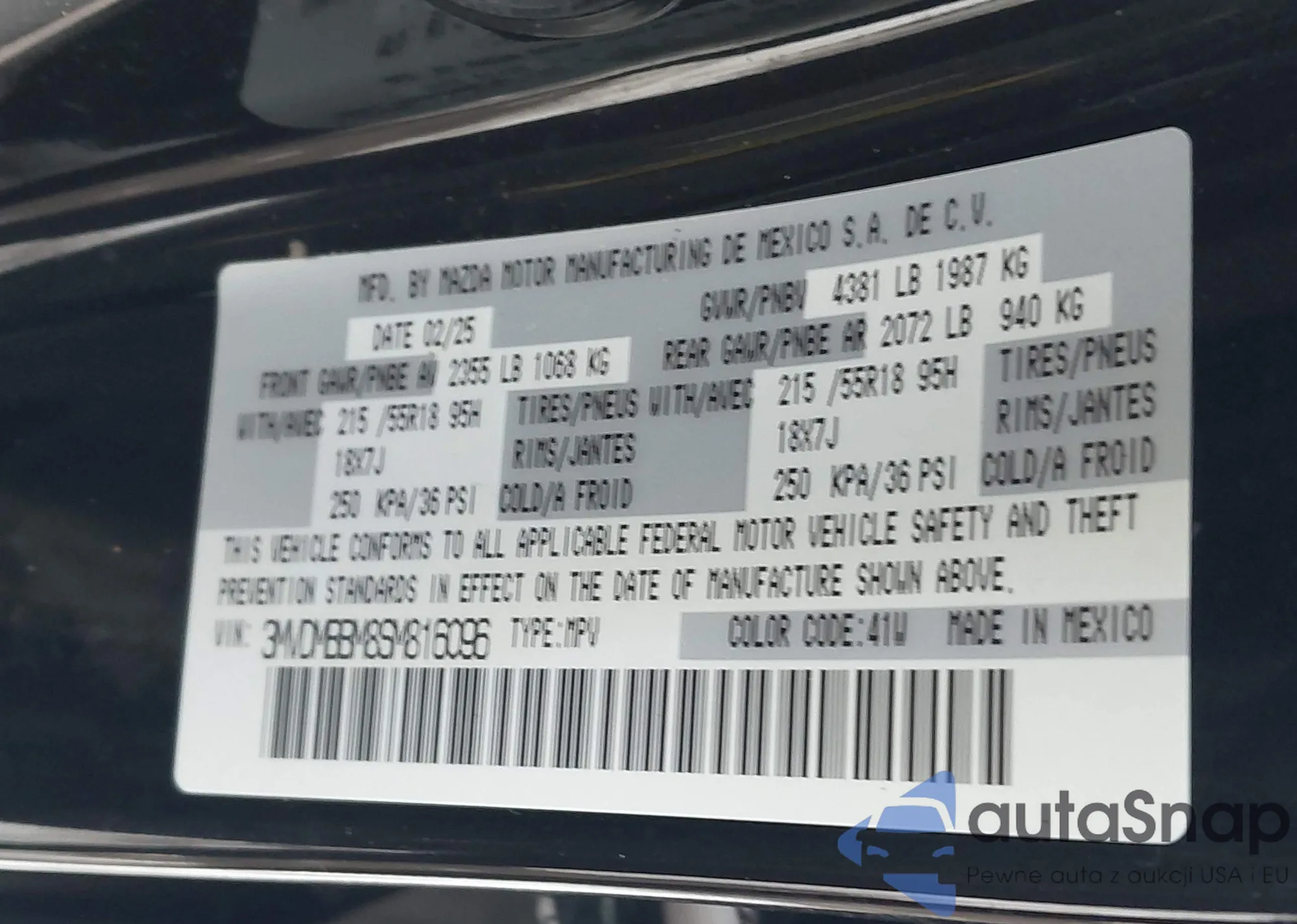 • VIN 3MVDMBBM8SM816096