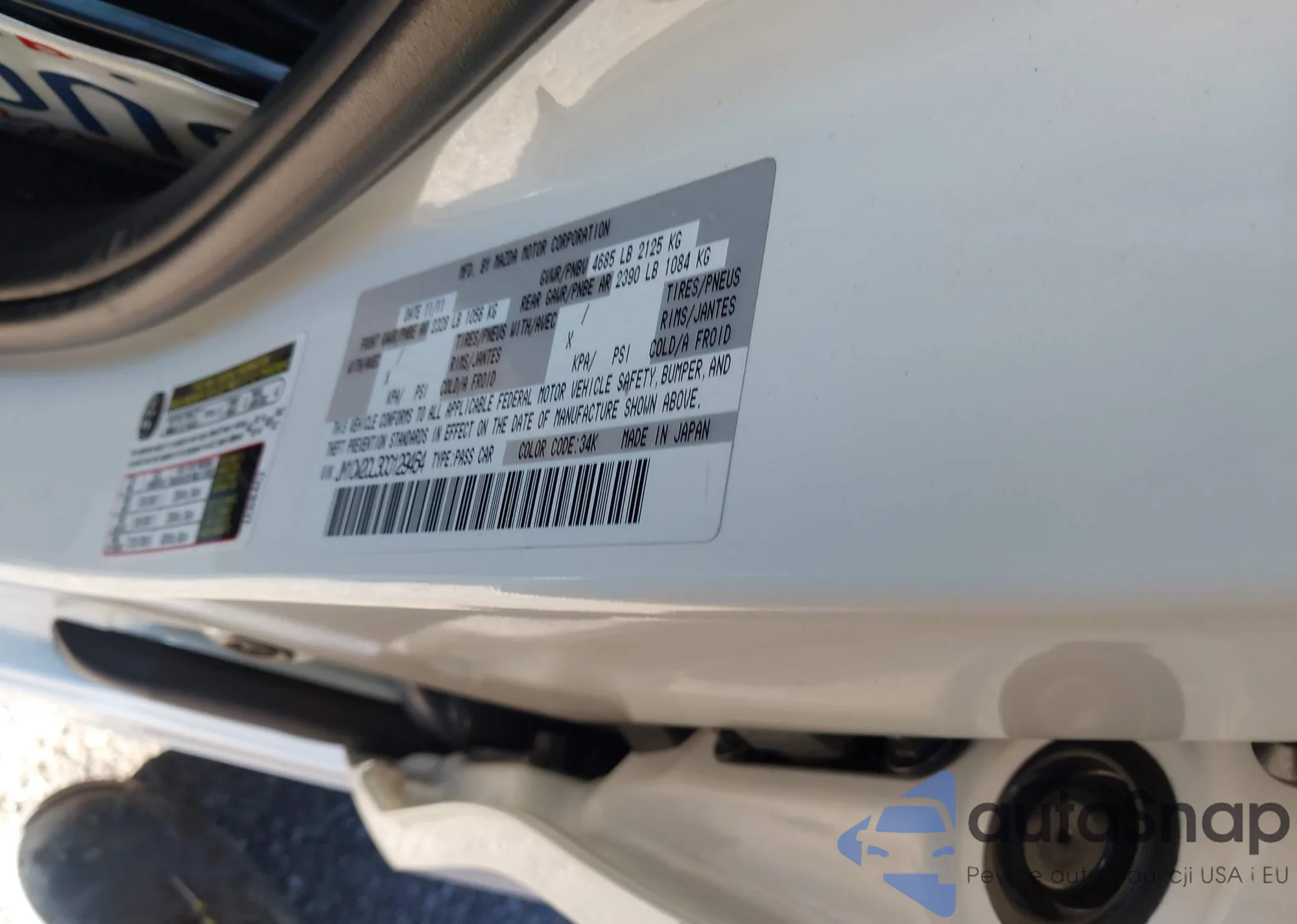 LOT: 43864839 VIN: JM1CW2CL3C0129464
