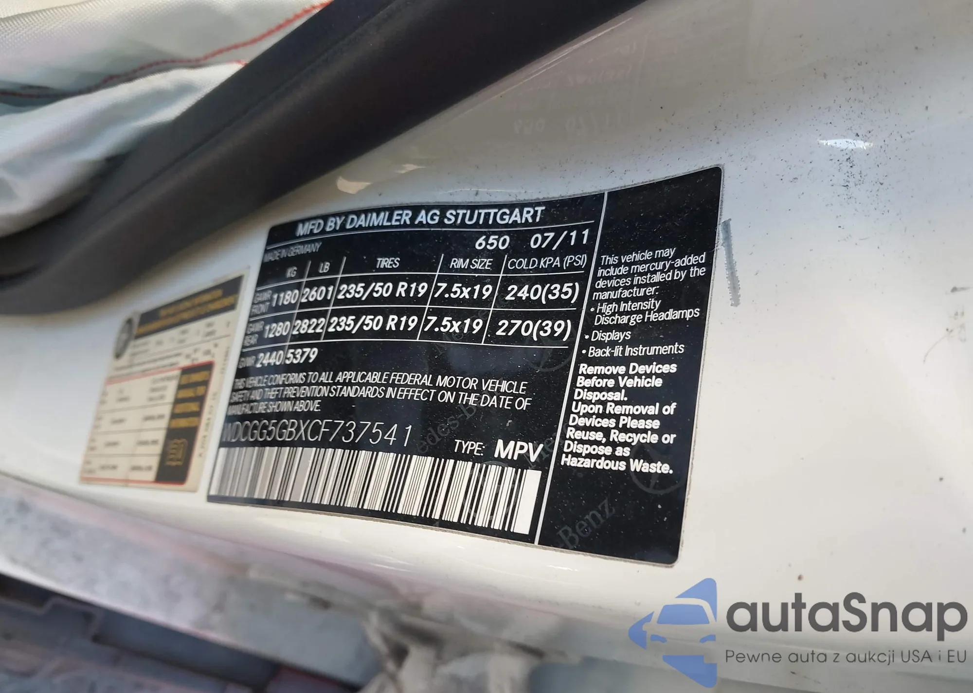 • VIN WDCGG5GBXCF737541
