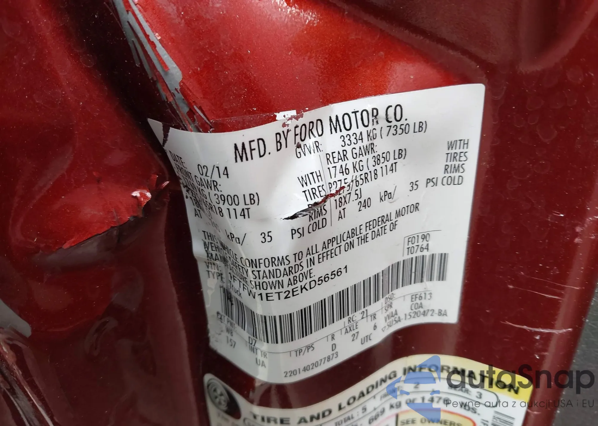 • VIN 1FTFW1ET2EKD56561