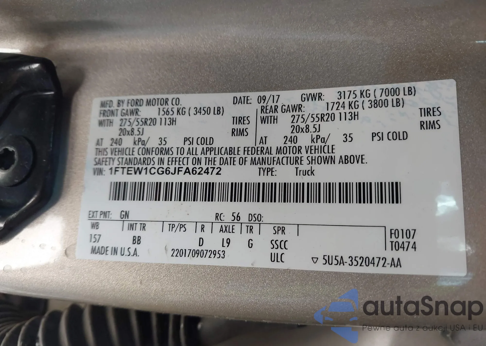 • VIN 1FTEW1CG6JFA62472