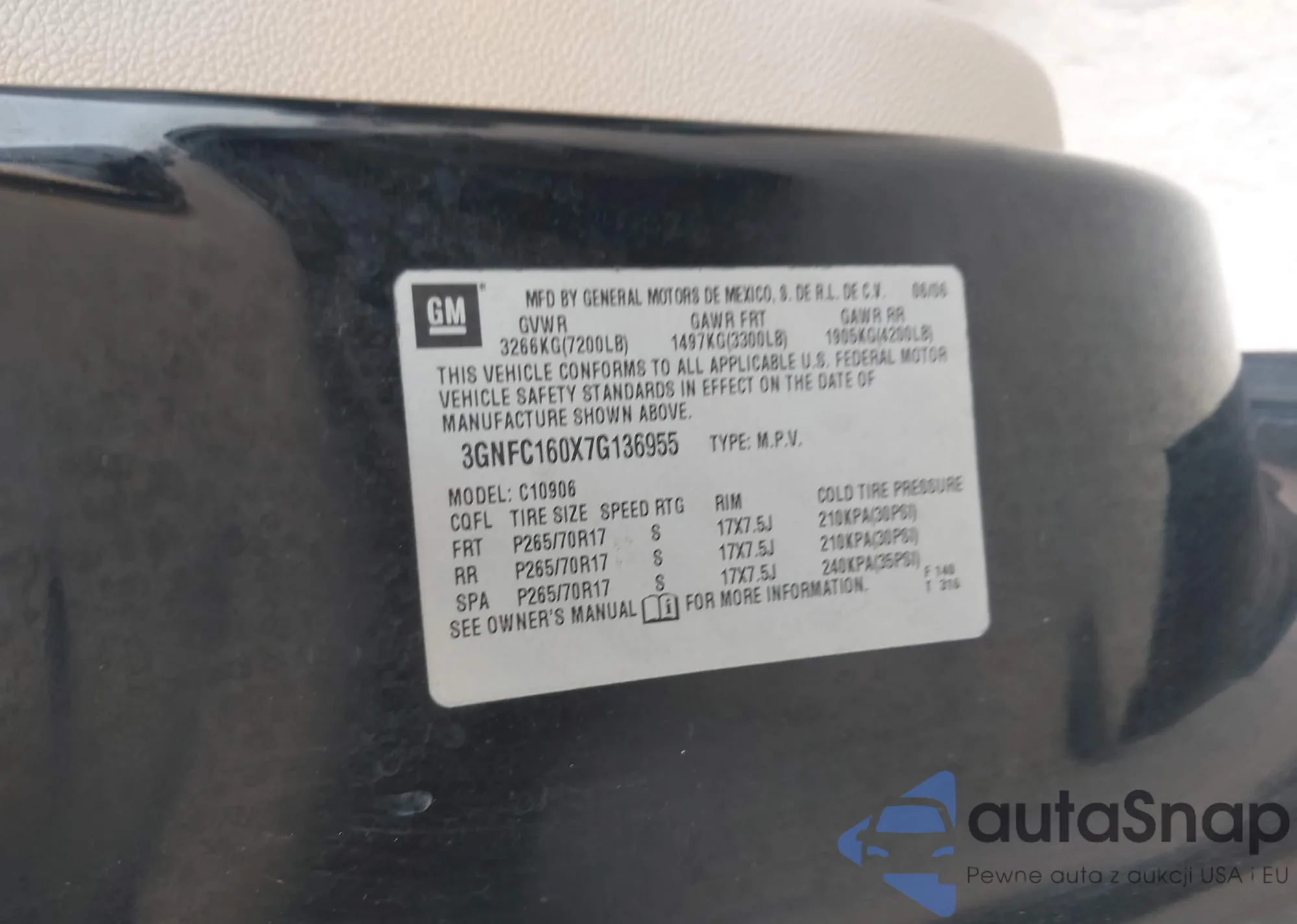 LOT: 43951102 VIN: 3GNFC160X7G136955
